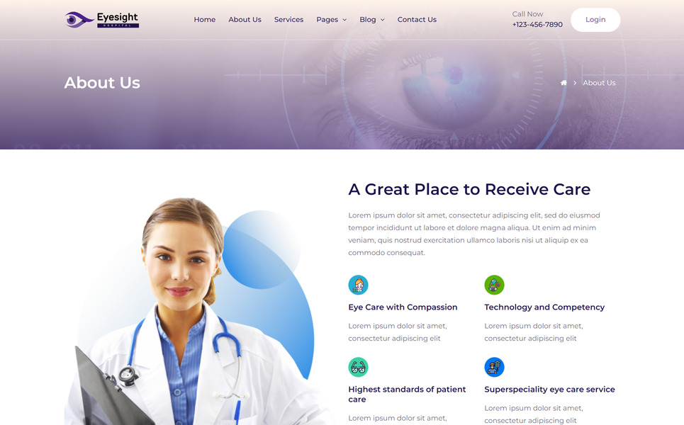 - Pre-built Pages for Services, About Us, and Team: Highlights services offered, clinic information, and doctor profiles.