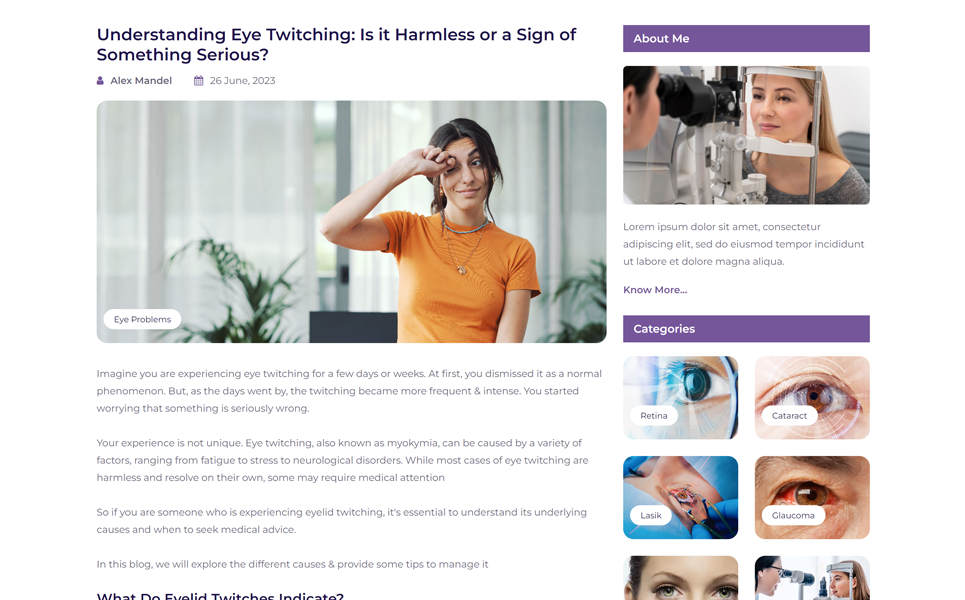- Blog Section for Eye Health Tips: Allows for content sharing on eye care tips, news, and industry updates.