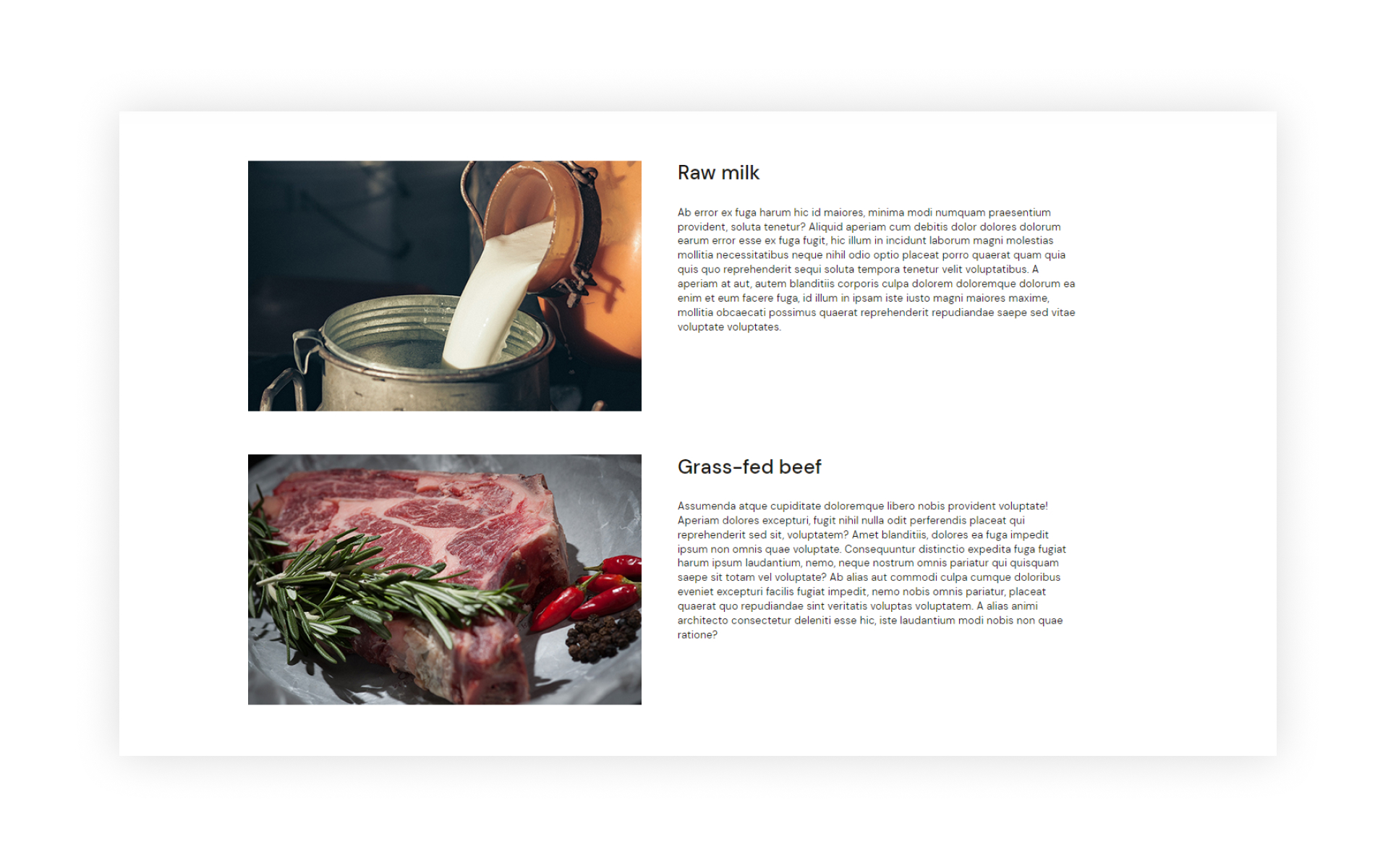 However, there are other notable advantages that this dairy farm HTML5 website template offers. For example, you can use its fullwidth banner section to create a notable first impression. With dedicated content sections, you can also describe your farm and its products in great detail. The built-in working forms will create a more interactive experience for your users. It will allow you to stay connected with clients and organize a regular newsletter.