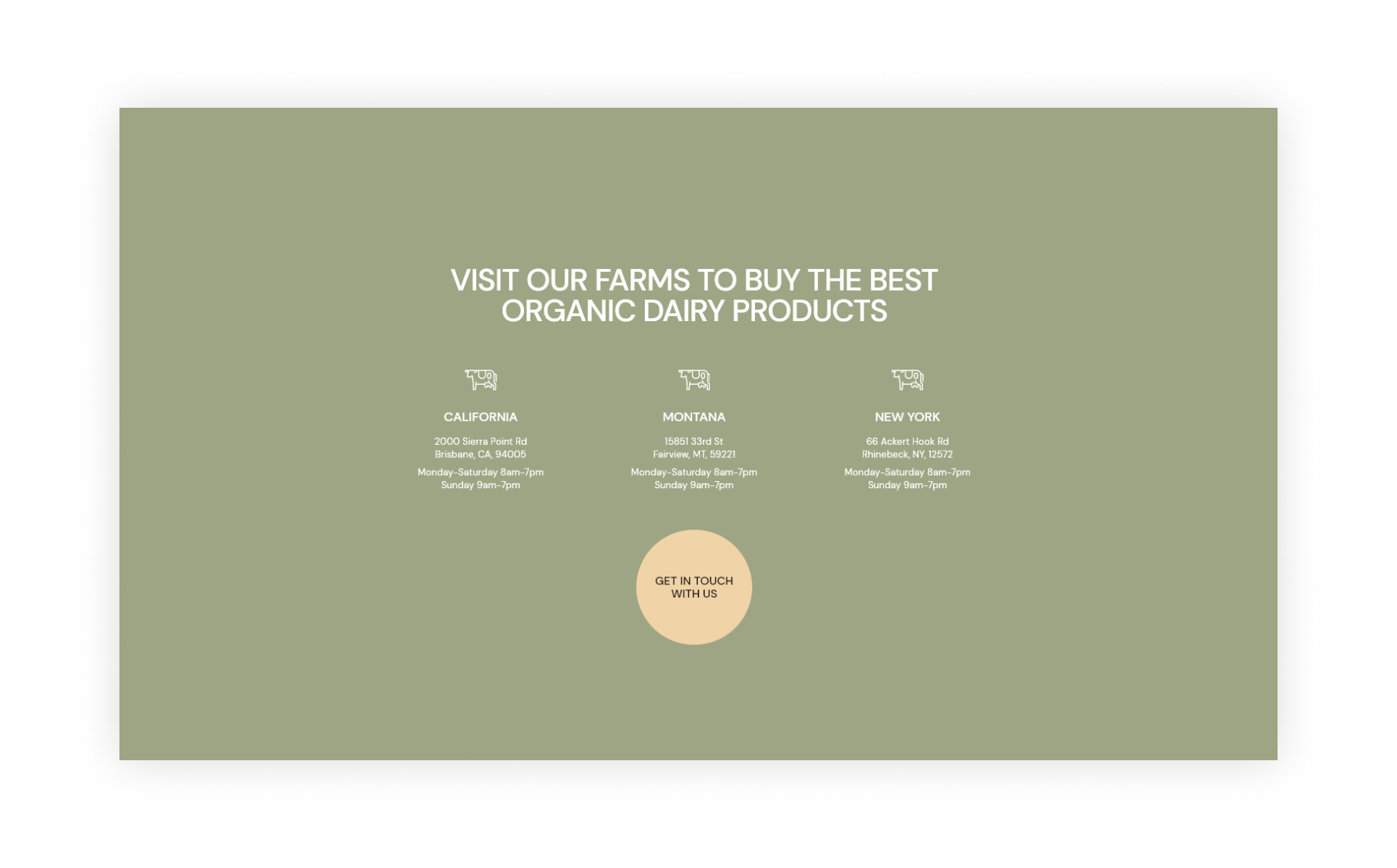 No website is complete without a diverse set of pages. This is what we tried to achieve with the Farmey dairy farm HTML5 website template. It includes a variety of ready-made pages for various purposes. For example, you can easily tell the story of your farm with the About page. Your customers will be glad to find more about the open vacancies with the help of Careers page. And of course, such pages as Our Products and Contacts will help you to advertise your [products and connect with your customers.