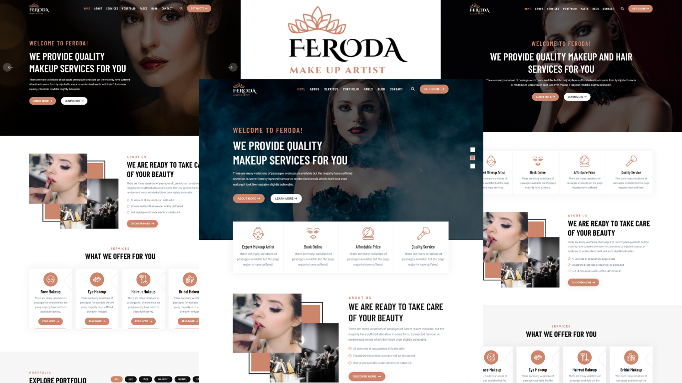 Feroda - awesome, latest and perfect HTML5 Template. Feroda is ideal design for makeup artist, model, influencer, beauty and makeup artistry business website. Feroda is written in valid and clean code and It’s Super easy to customize so it’ll suit your needs. Feroda template will serve your services in the best way. You can best utilize Feroda template at maximum of its capabilities.Feroda template includes modern home pages and various ready to use page layouts.You can easily edit and customize the default homepage to make it in line with your specific content arrangement.