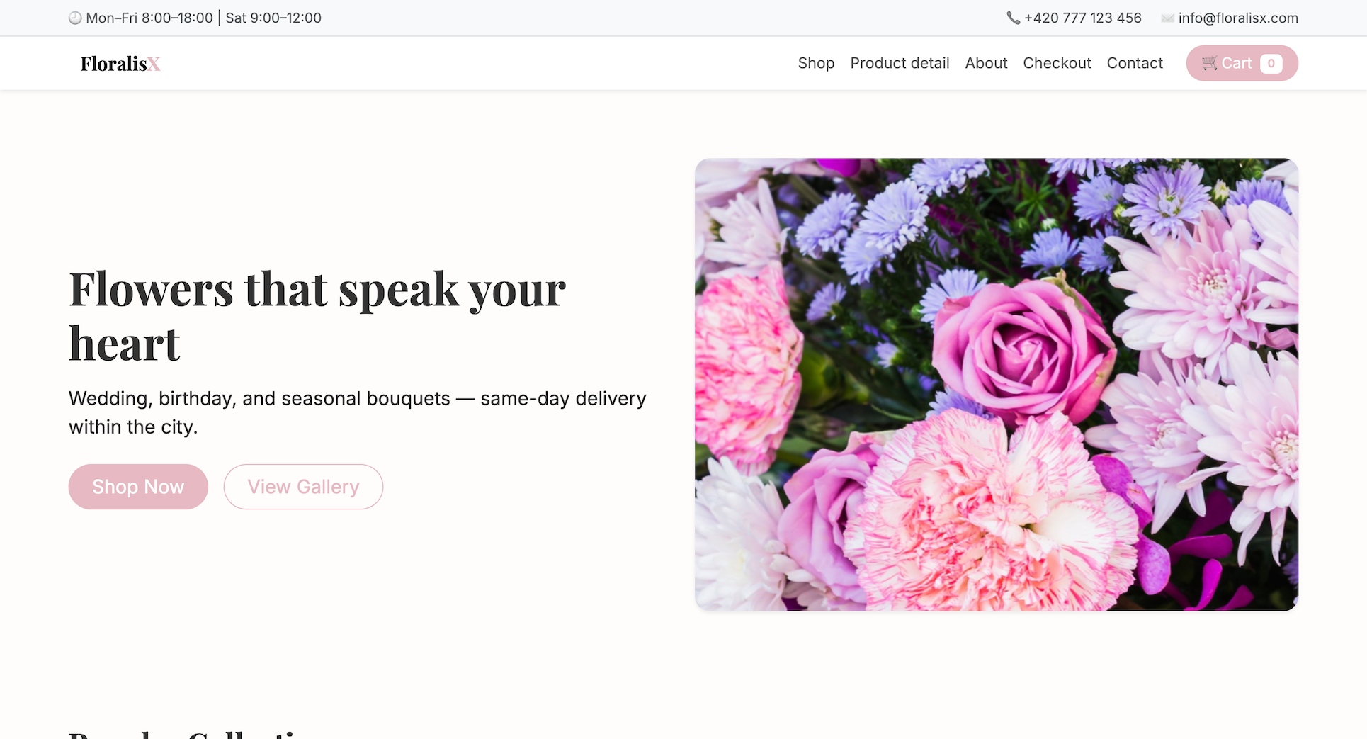 FloralisX is a beautifully crafted HTML template tailored for florists, bouquet studios, and event flower designers. With its soft aesthetics, refined typography, and clean structure, it helps you present your floral services and products in the most appealing way.