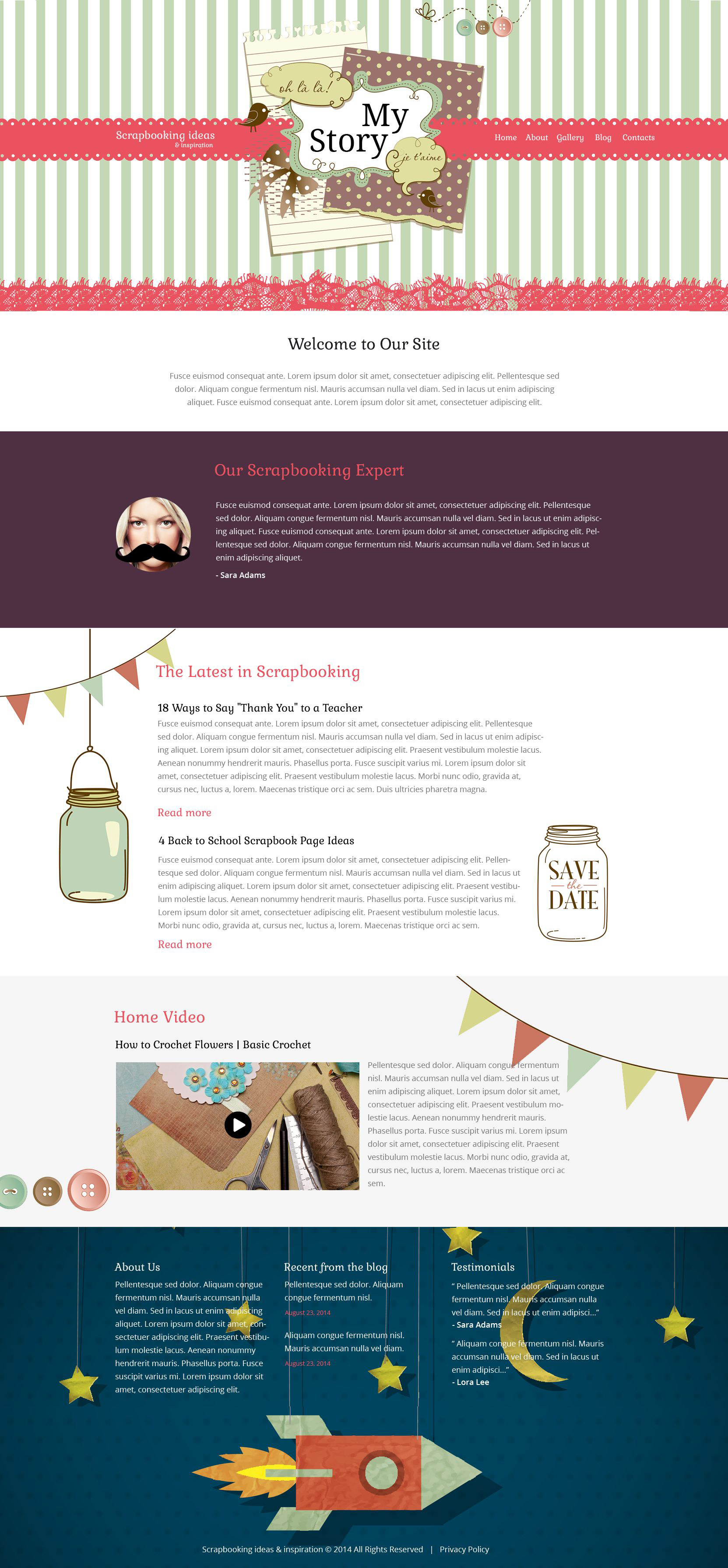 – create 5 basic pages (Home, About us, Services, Gallery, Contacts) with sample texts and images which match the chosen design, and a blog page (however, there might be minor design differences due to the default WordPress functionality)