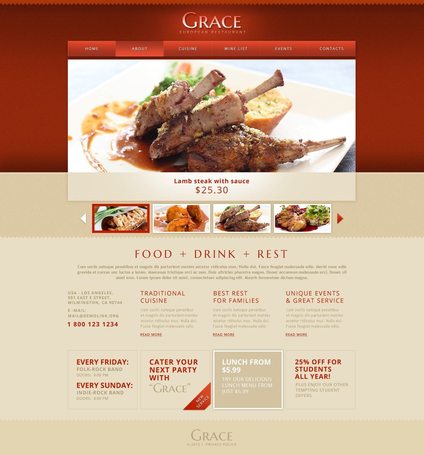 – create 5 basic pages (Home, About us, Services, Gallery, Contacts) with sample texts and images which match the chosen design, and a blog page (however, there might be minor design differences due to the default WordPress functionality)