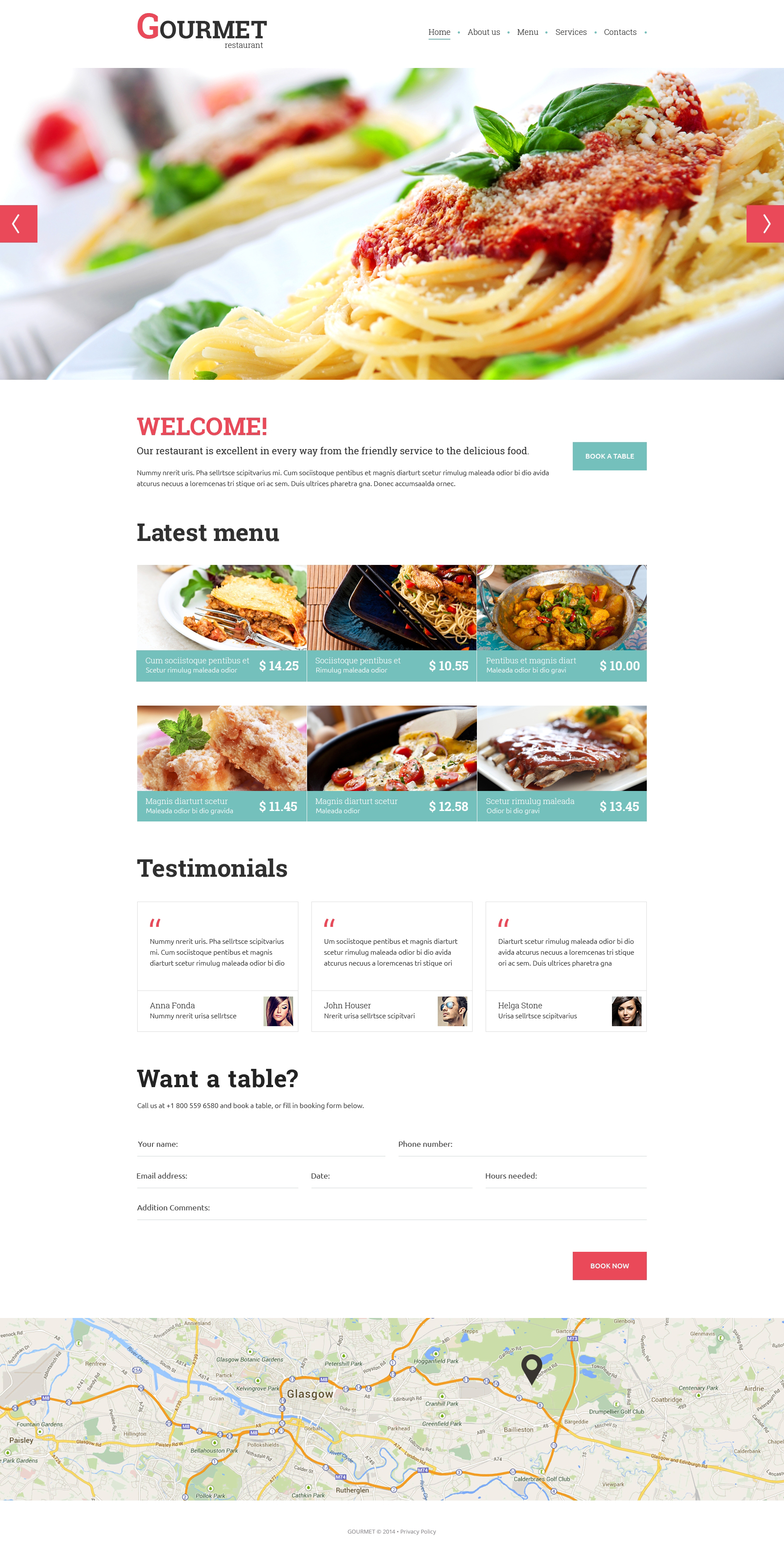– create 5 basic pages (Home, About us, Services, Gallery, Contacts) with sample texts and images which match the chosen design, and a blog page (however, there might be minor design differences due to the default WordPress functionality)
