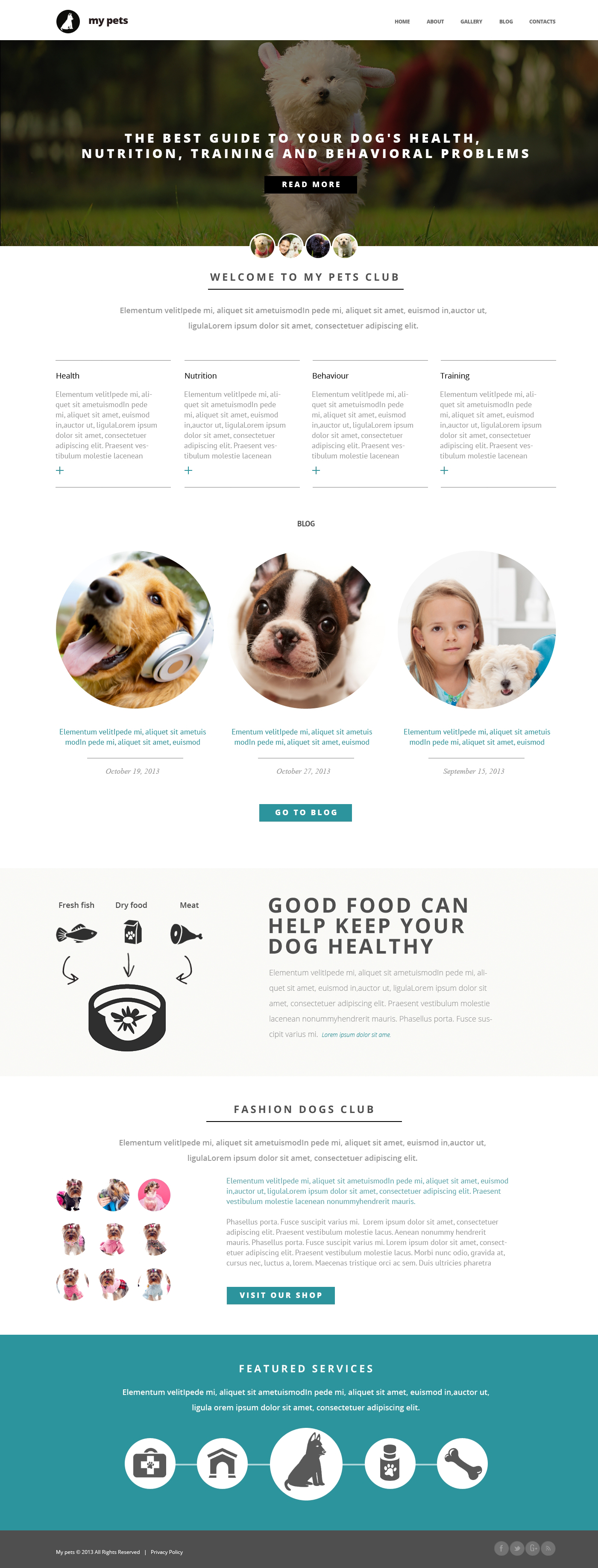 – create 5 basic pages (Home, About us, Services, Gallery, Contacts) with sample texts and images which match the chosen design, and a blog page (however, there might be minor design differences due to the default WordPress functionality)