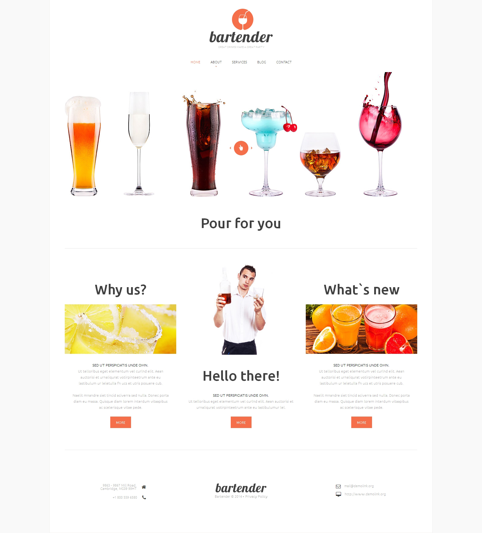– create 5 basic pages (Home, About us, Services, Gallery, Contacts) with sample texts and images which match the chosen design, and a blog page (however, there might be minor design differences due to the default WordPress functionality)