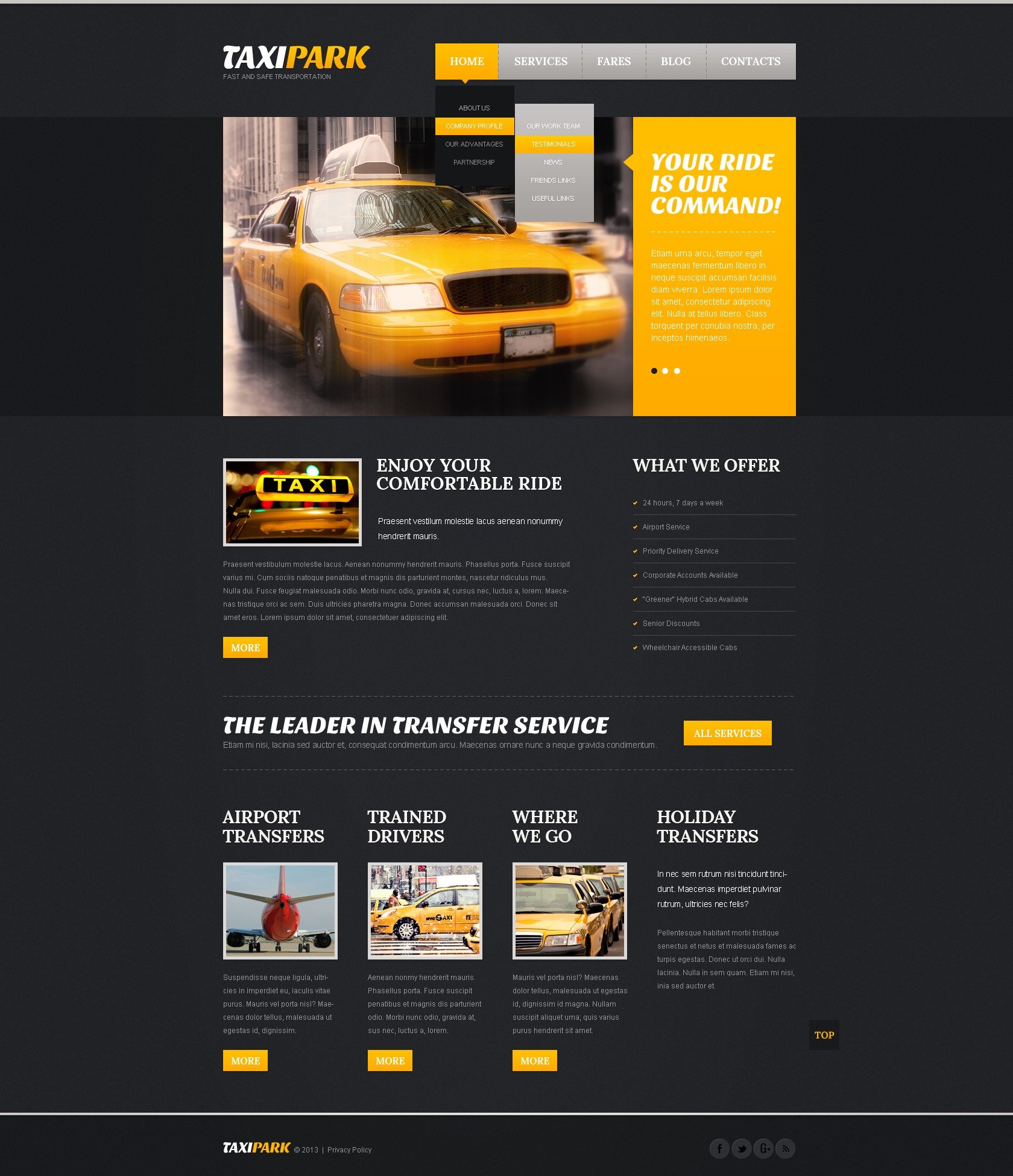 Free Taxi Services Website Theme Website Template