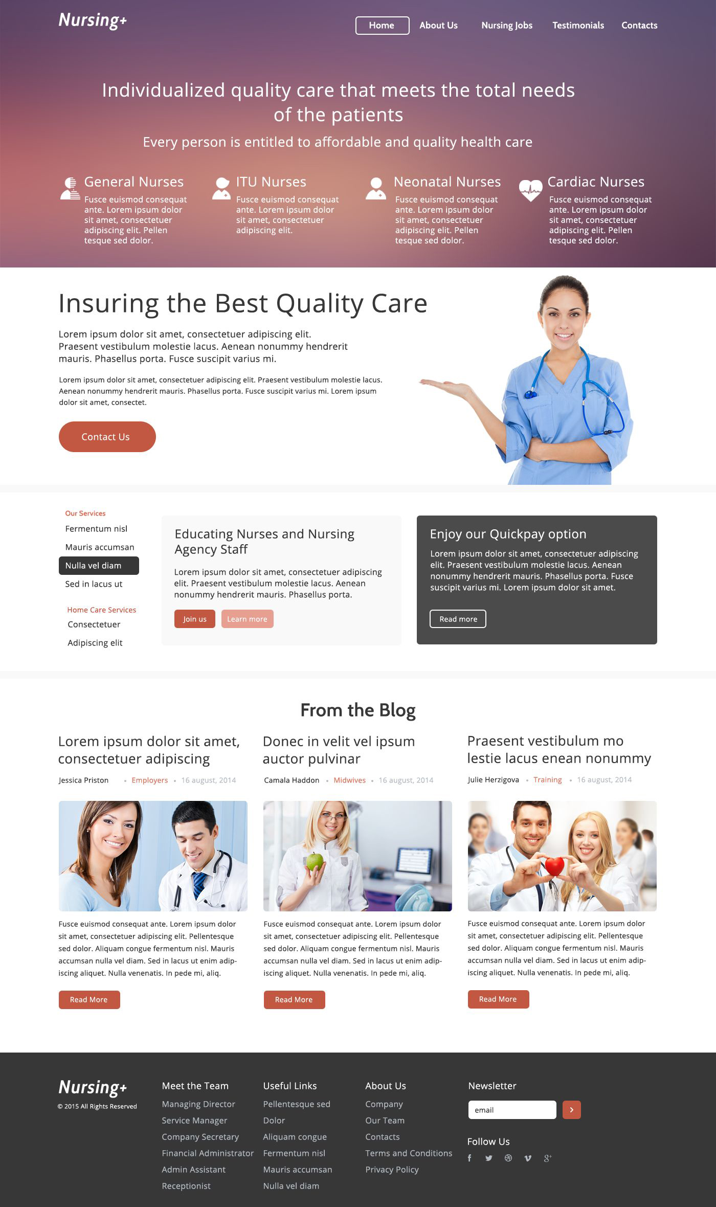 – create 5 basic pages (Home, About us, Services, Gallery, Contacts) with sample texts and images which match the chosen design, and a blog page (however, there might be minor design differences due to the default WordPress functionality)
