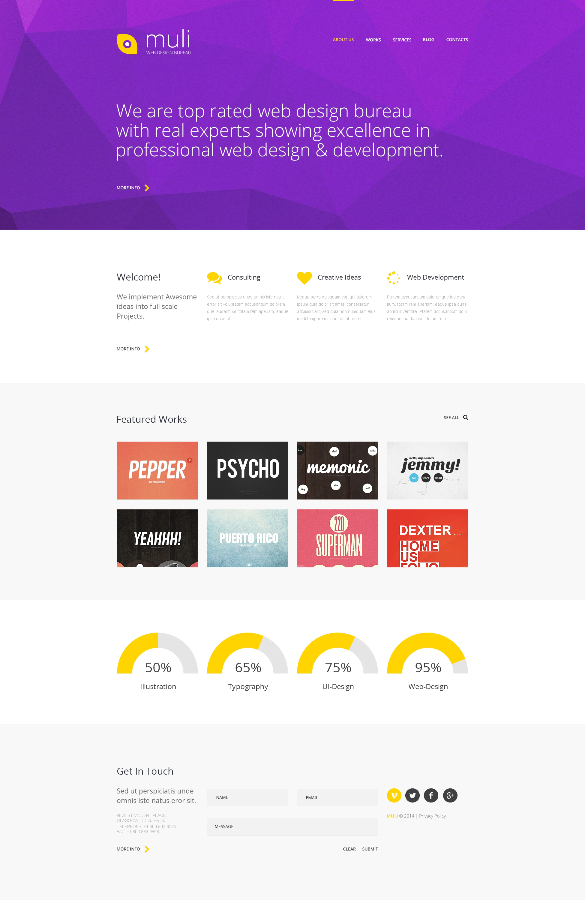 – create 5 basic pages (Home, About us, Services, Gallery, Contacts) with sample texts and images which match the chosen design, and a blog page (however, there might be minor design differences due to the default WordPress functionality)