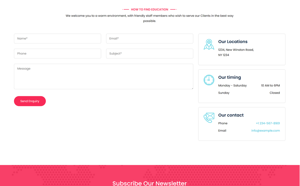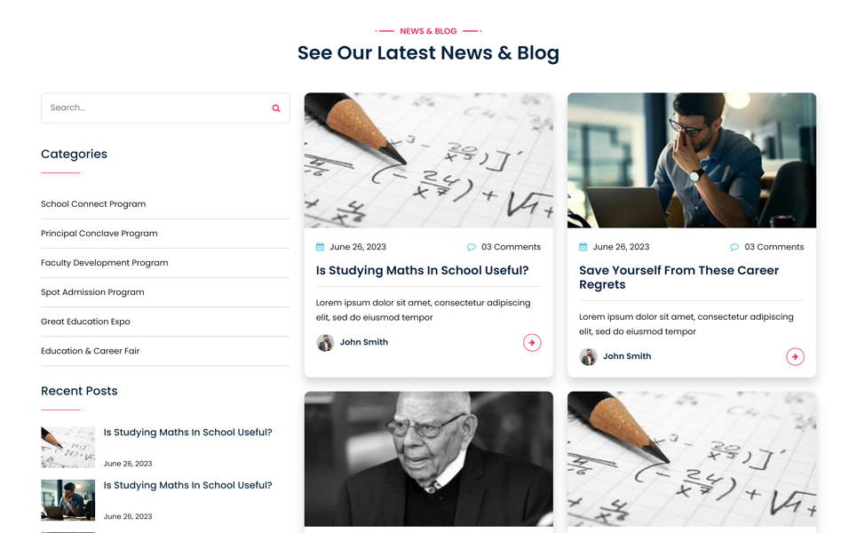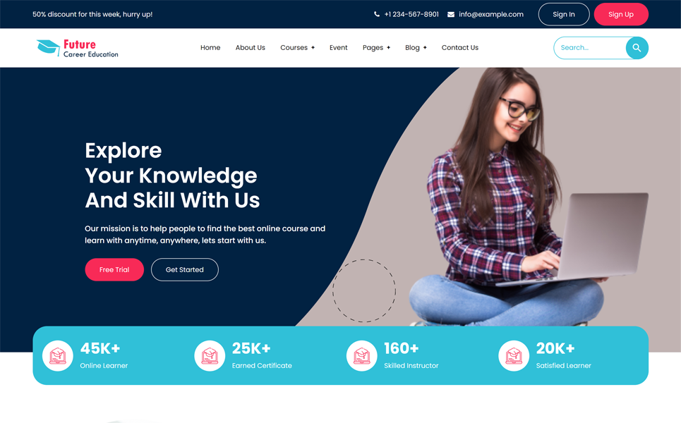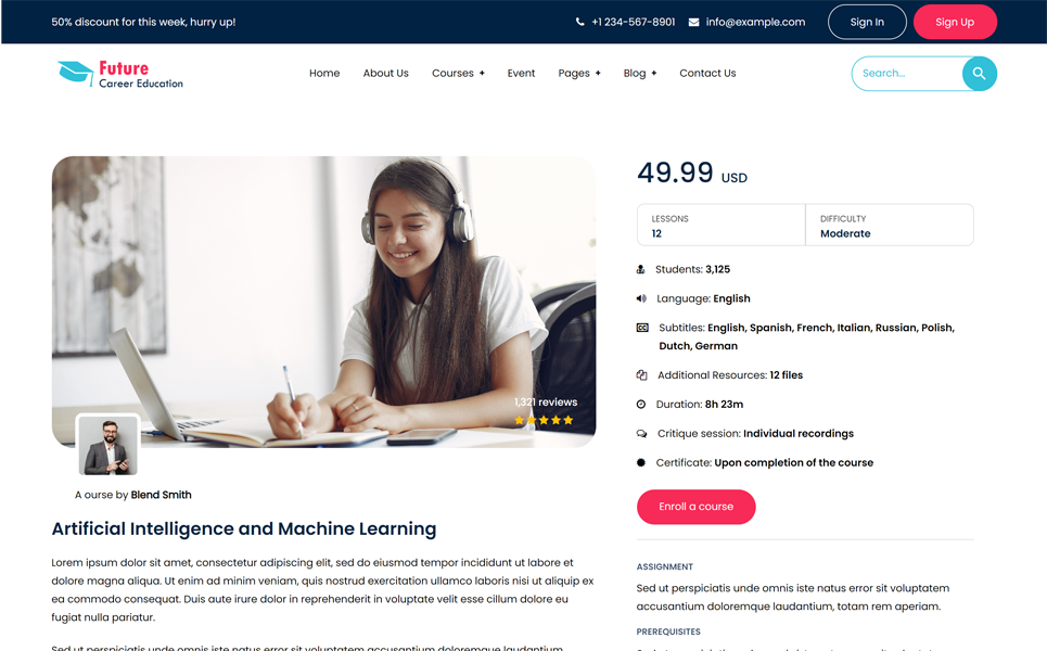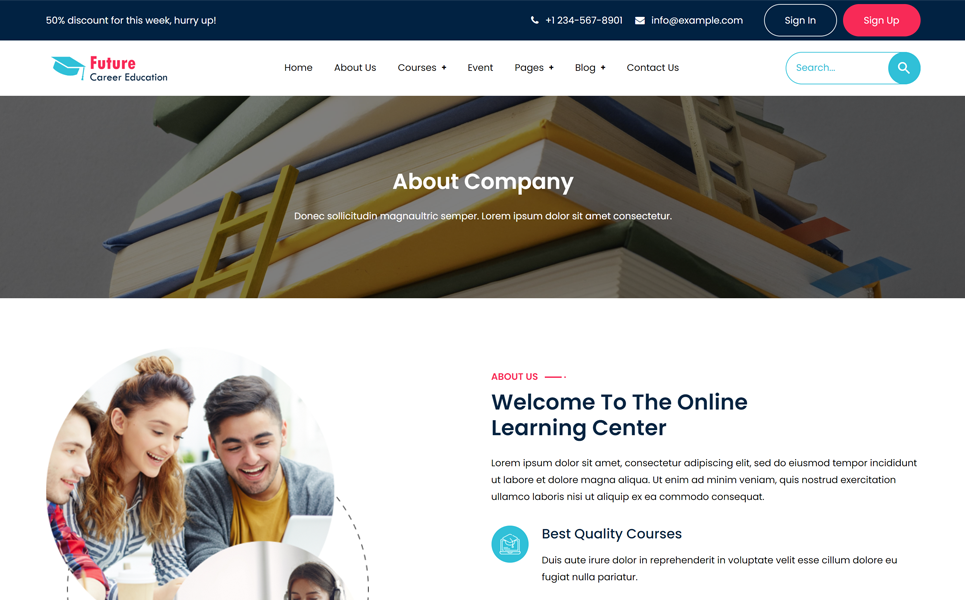 - Pre-built Pages for Courses, Events, and Resources: Dedicated layouts for showcasing educational offerings.