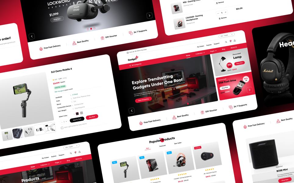 Gadget Star stands out as the ultimate platform for building a modern and stylish online store for Electronics, Gadgets, and Digital Products. Designed with precision and powered by cutting-edge Frontend Technologies, this Clean and Minimal Multi-purpose E-commerce HTML Template is tailored to deliver a seamless shopping experience. Whether you're a tech innovator or a business owner in the electronics industry, Gadget Star empowers you to showcase your products with elegance and functionality. Transform your vision into reality with a template that combines sophistication, speed, and user-centric design.