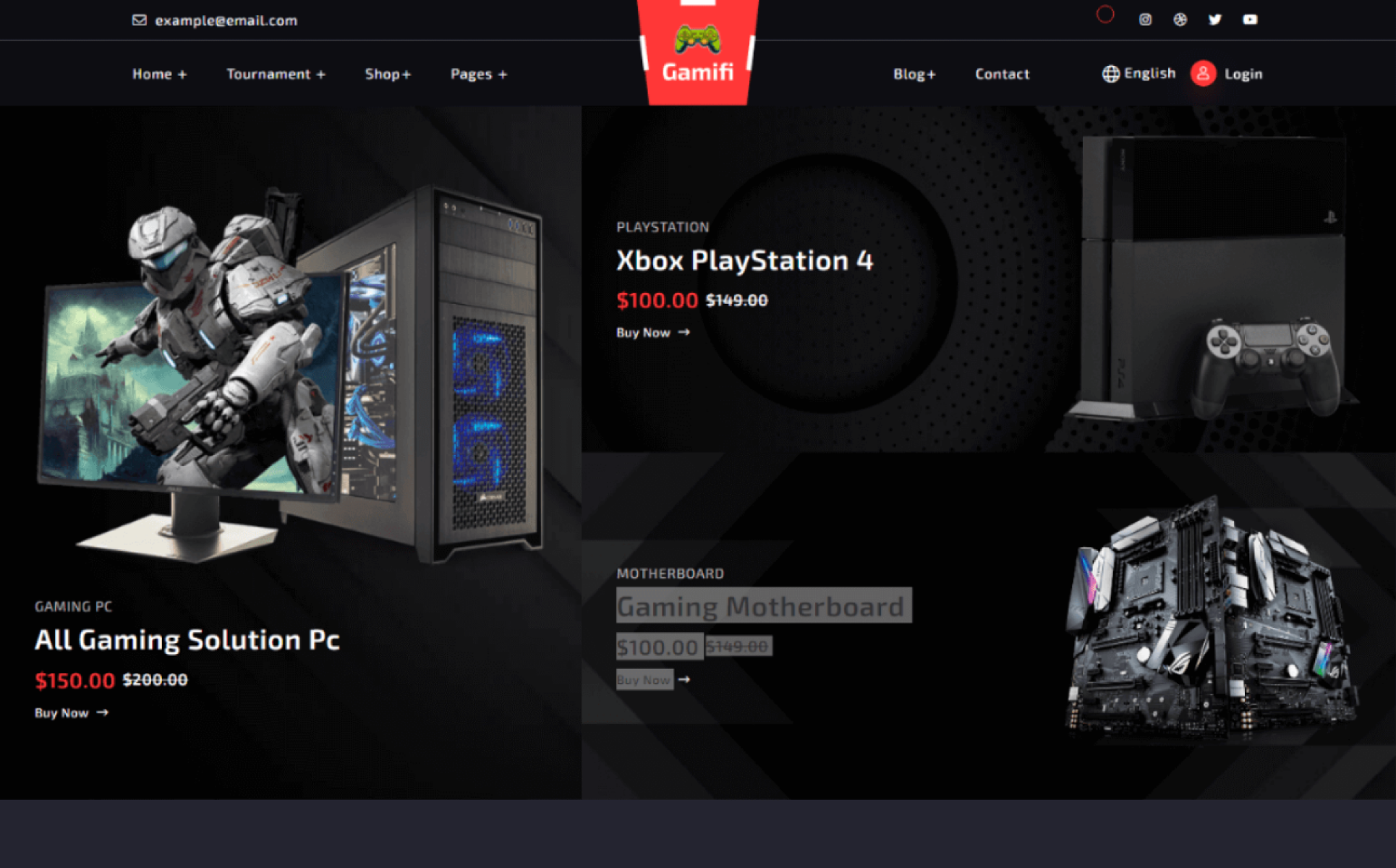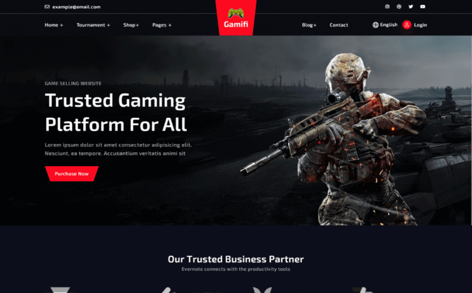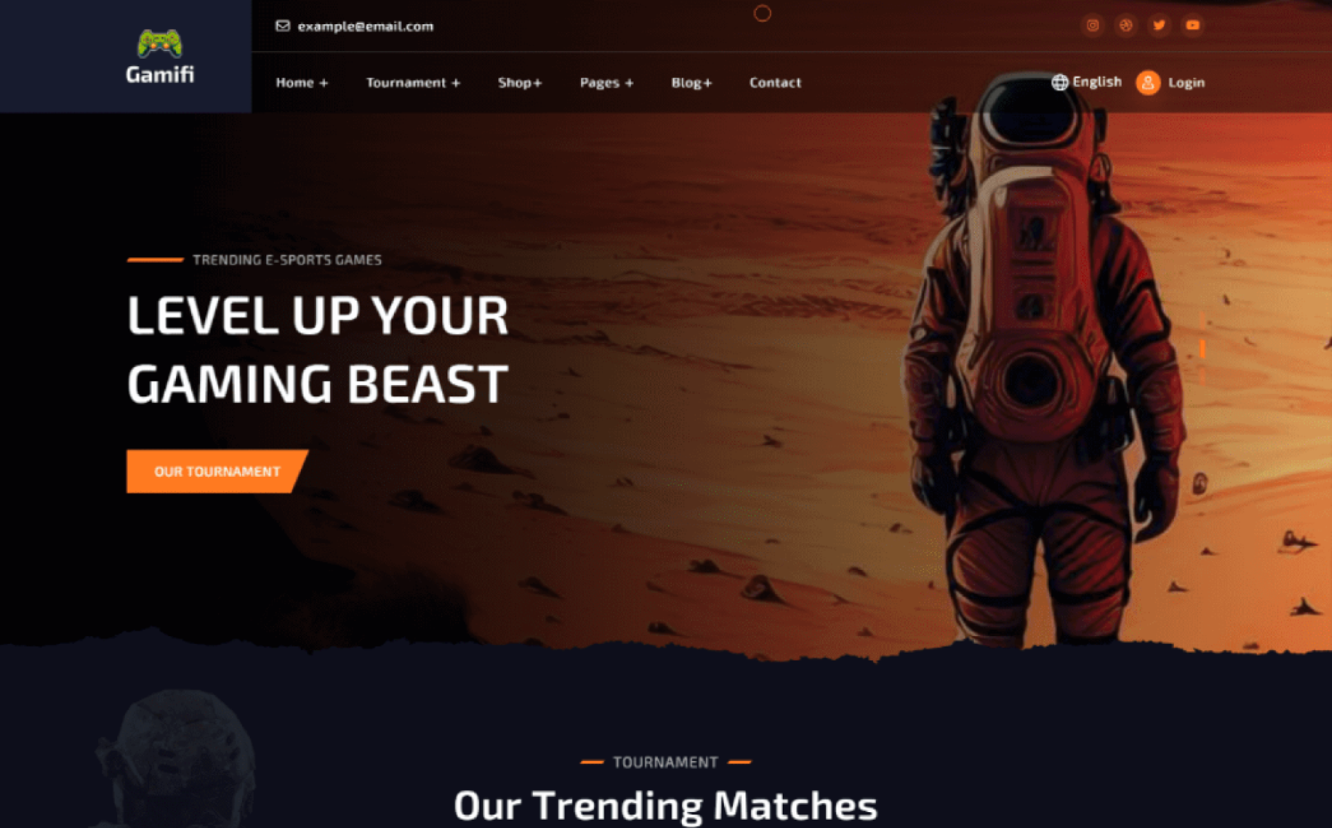 Gamifi - eSports and Gaming Equipment Template. It is specifically focused on categories such gaming magazines, gaming tournaments, gaming teams, gaming competitions, selling gaming gears, and much more. Gamifi is also an HTML template with a distinctive and modern design that loads quickly and is fully responsive. Also, it supports RTL for language like - arabic, hebrew etc... . Because of the excellent quality of the codes, customization becomes very easy for developers. Additionally, we included full documentation with screenshots that explains how to customize every aspect of this template. We have made an effort to make this template appear beautiful so that you can increase website traffic.