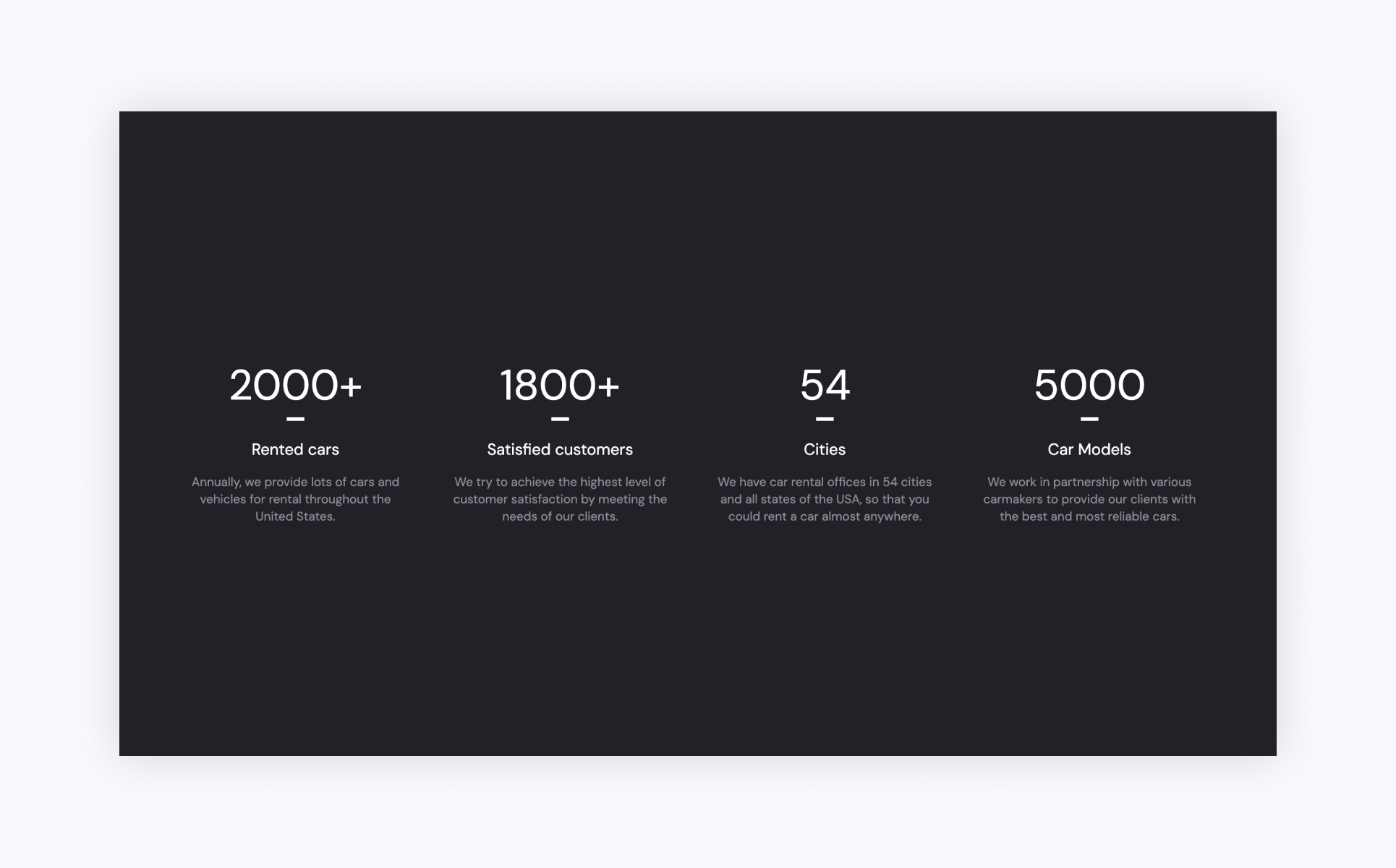 However, there is more to what the car rental Bootstrap 5 website template can offer. It is not only a feature-rich solution but also a customizable one. Due to the variety of sections, you can easily create a 100% unique user experience. The diverse components allow a website owner to showcase recent testimonials and advertise the provided services. From MPV rental to car leasing, you can tell your potential customers about all the benefits your company provides. Additionally, the template allows for easy navigation and informative website browsing. The latter is possible due to the well-designed elements such as progress bars, tables, and buttons.