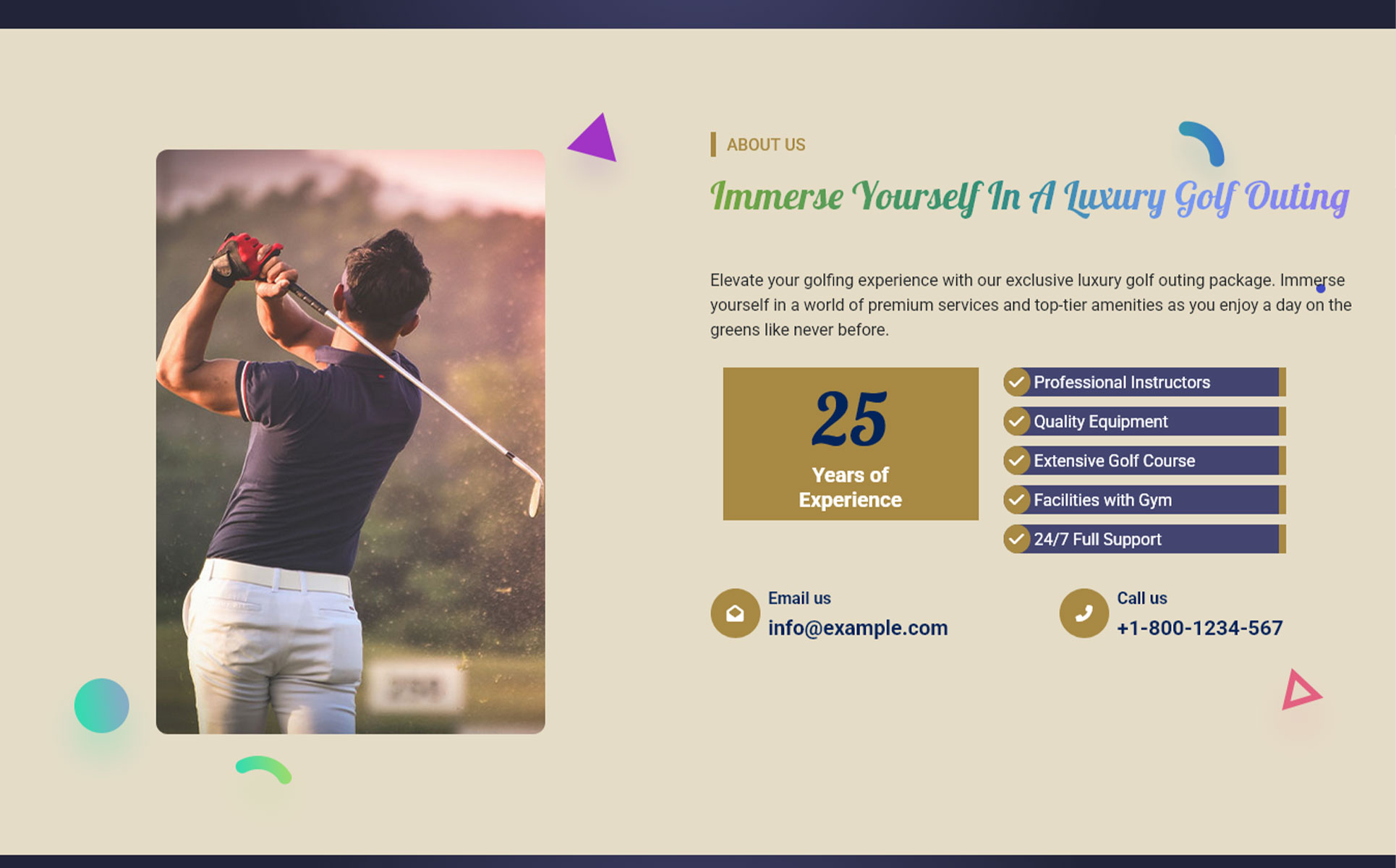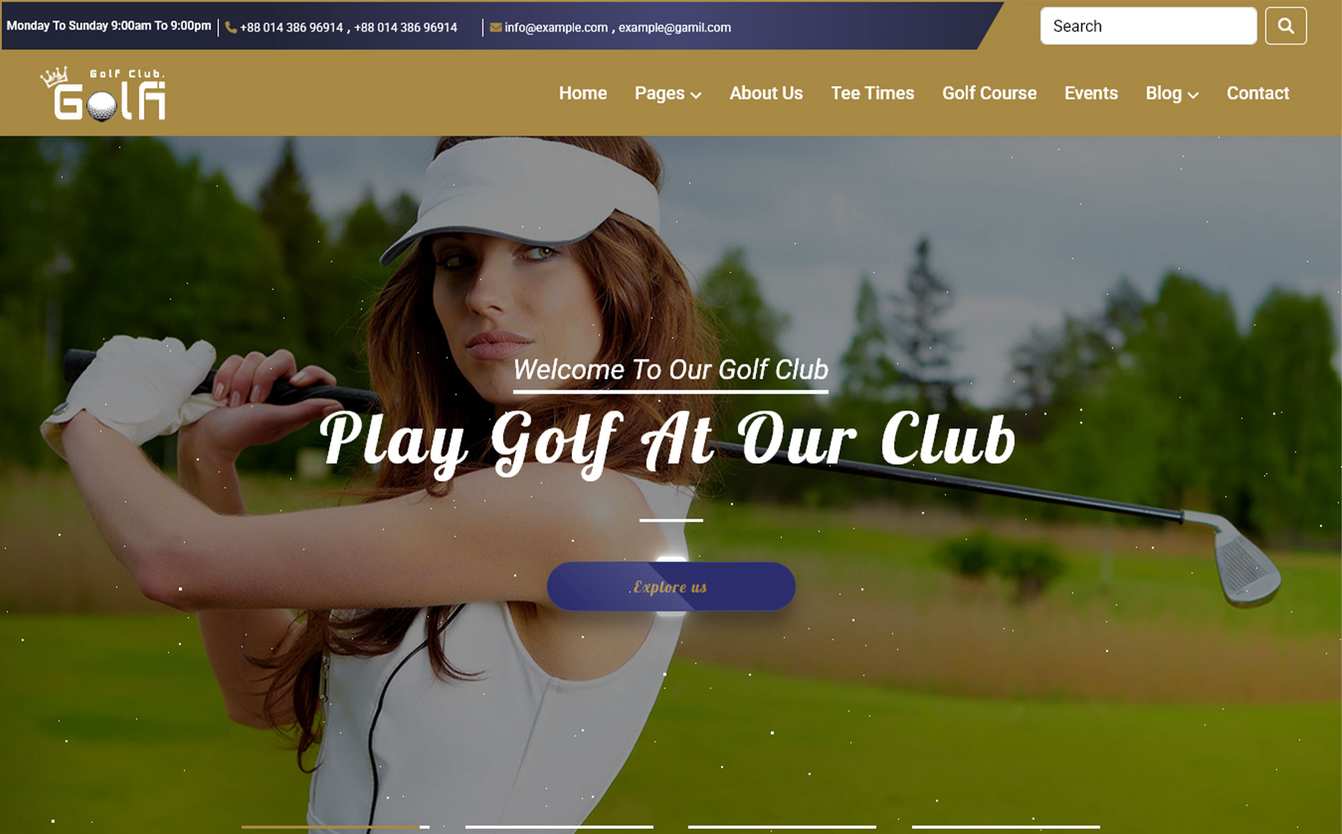 Elevate your sports club's online presence with Golfi - a responsive website template designed specifically for golf courses. This sleek and modern template features easy navigation, stunning visuals, and a user-friendly layout to showcase all the amenities and services of your club. Impress potential members and visitors with a professional website that speaks to the excellence of your course. With its clean design and intuitive interface, Golfi makes it easy to highlight the beauty and features of your course. Whether you're promoting events, offering memberships, or sharing news, this template will help you create a sophisticated online presence that showcases your club's unique offerings.Upgrade your club's website today with Golfi.