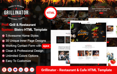Grillinator - Food Restaurant Barbecue Cafe Grill Bar Bistro HTML Template