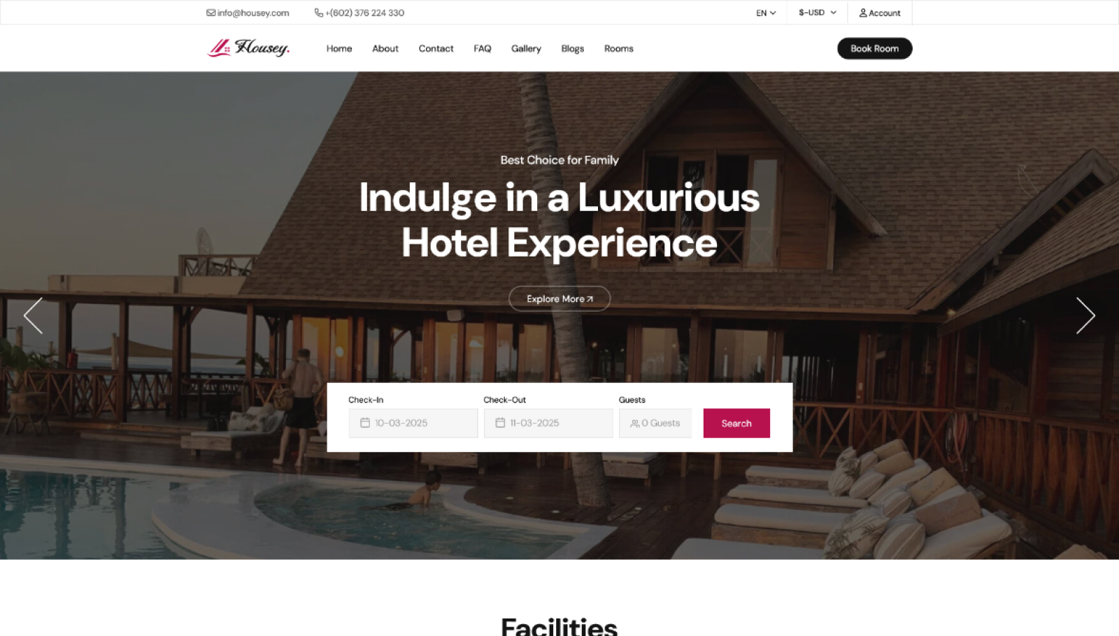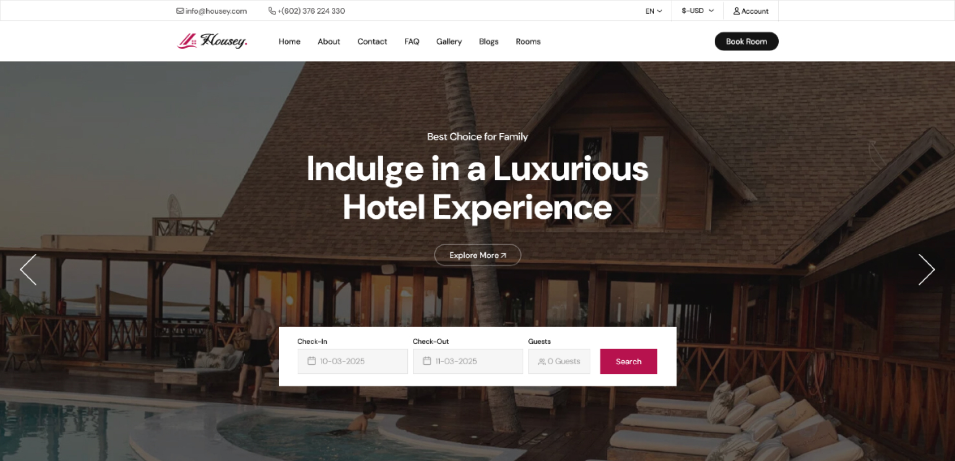 Housey - Resort & Hotel Management Booking Laravel Script Website Template