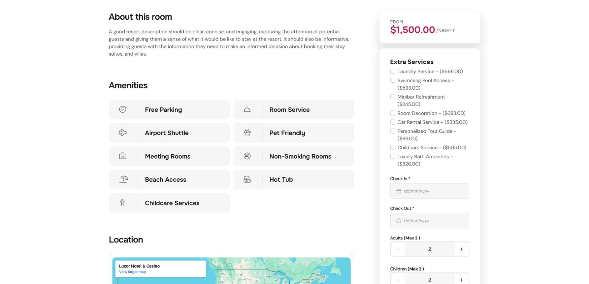 With integrated features like dynamic room listings, booking management, amenity displays, guest testimonials, and more, this Laravel script provides everything you need to turn website visitors into confirmed guests. The admin panel allows for easy updates and configuration, giving you full control over your property's online presence.