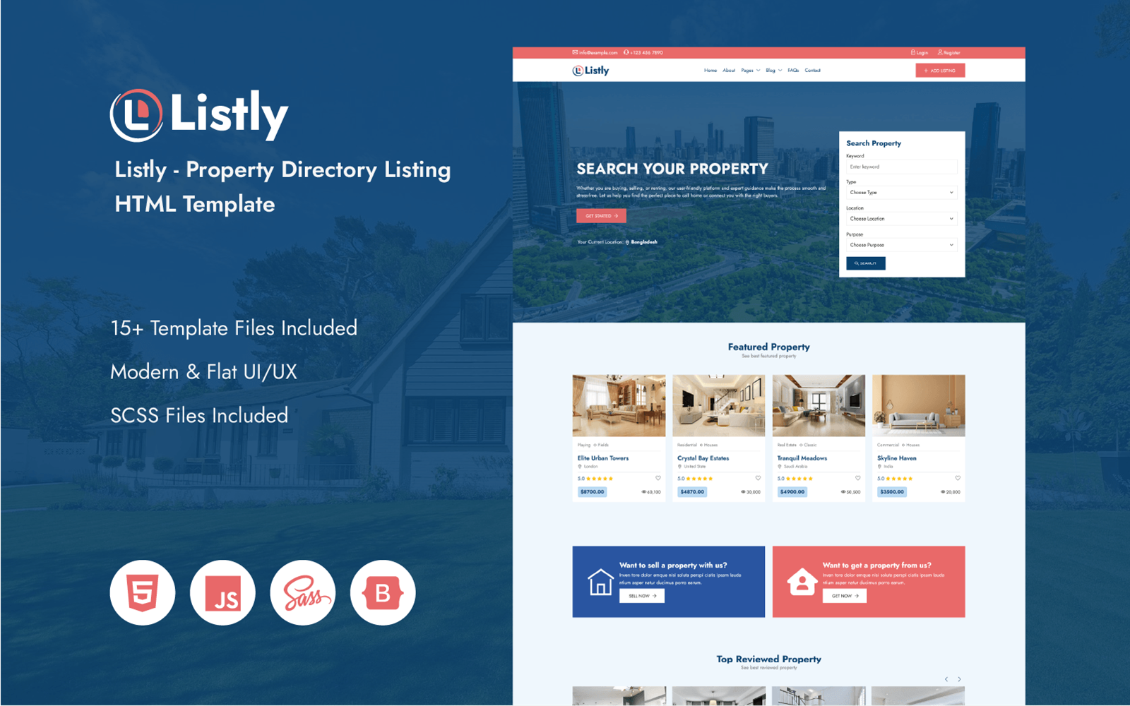 Listly, the ultimate HTML template designed specifically for property directories, real estate listings, and rental platforms. Whether you're building a website for real estate agents, property managers, or a marketplace for buyers and renters, Listly offers a sleek, modern, and user-friendly design to showcase properties in style.