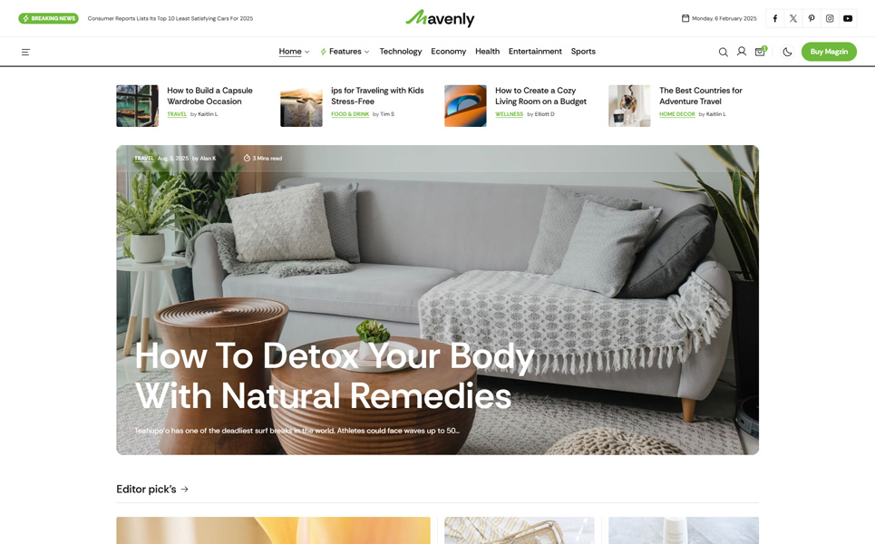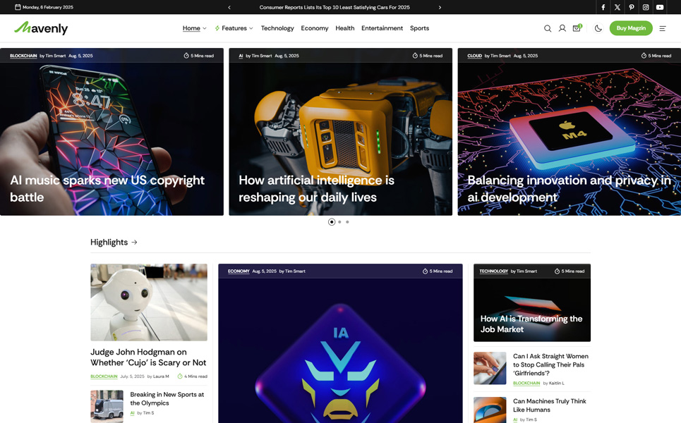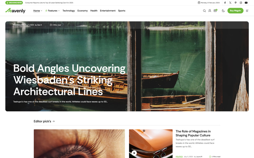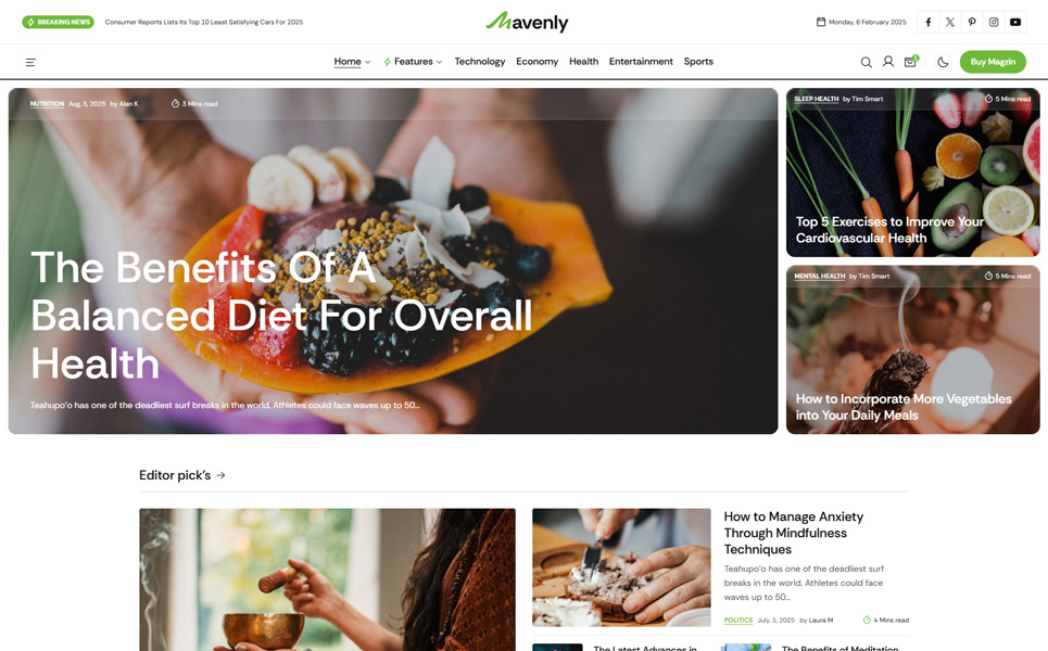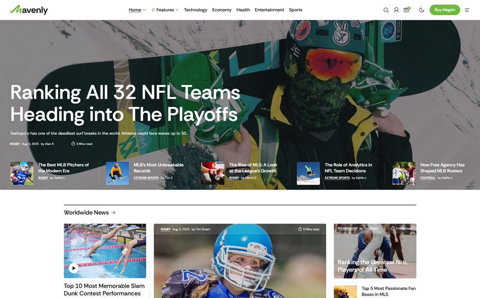 One of Mavenly’s standout qualities is its streamlined layout, which makes navigating the website a seamless experience for users. Its design is optimized to highlight your content, ensuring that your audience stays engaged and focused on what matters most—your material. From beautifully styled article pages to responsive layouts that work flawlessly across devices, Mavenly ensures a polished presentation of your website, no matter the platform.