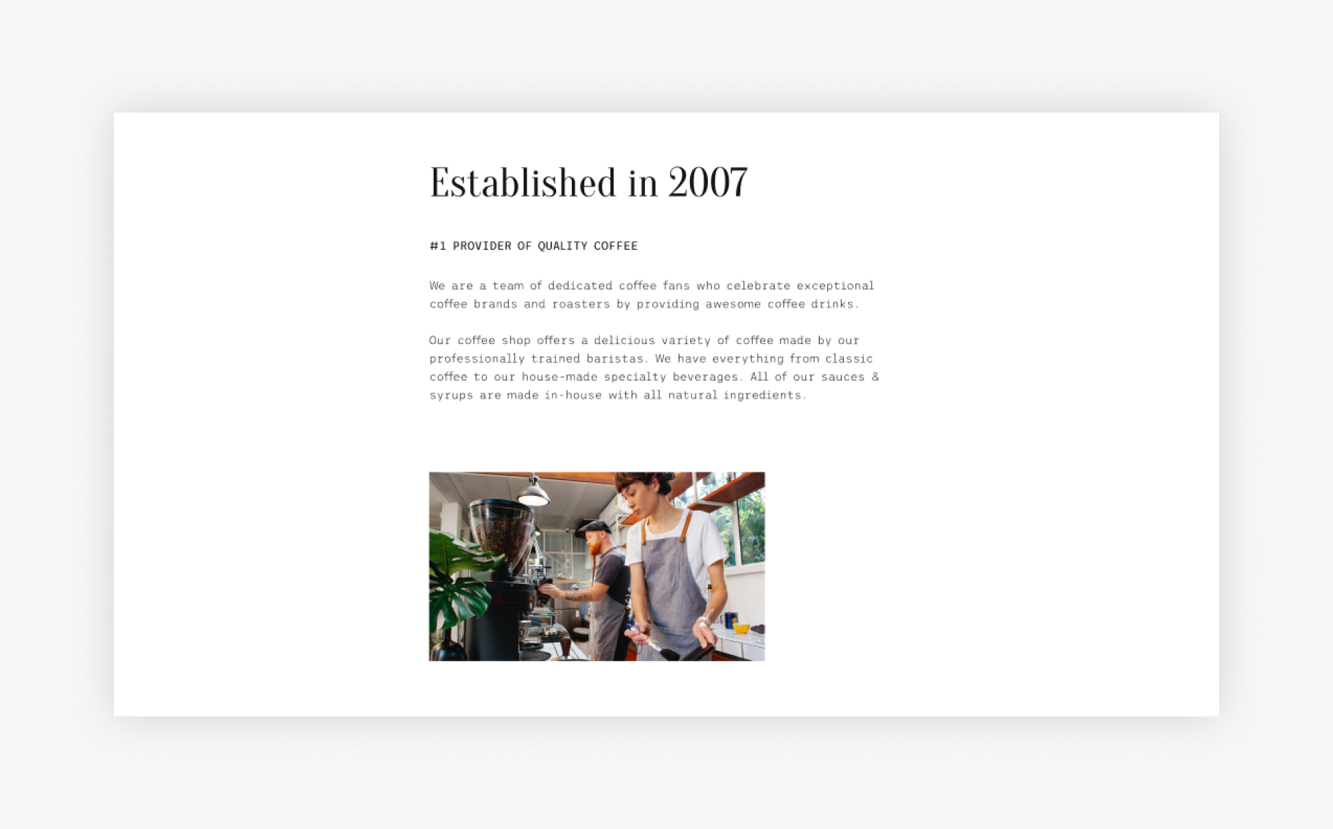 Our template is highly customizable, too. Due to the included set of UI elements, this coffee shop HTML5 website template has an incredible customization potential. Even if you have no prior experience in coding or web development, working with this template's components and elements will be quite easy. And if you are a seasoned developer, you'll find this template to be a great basis for your client's website.