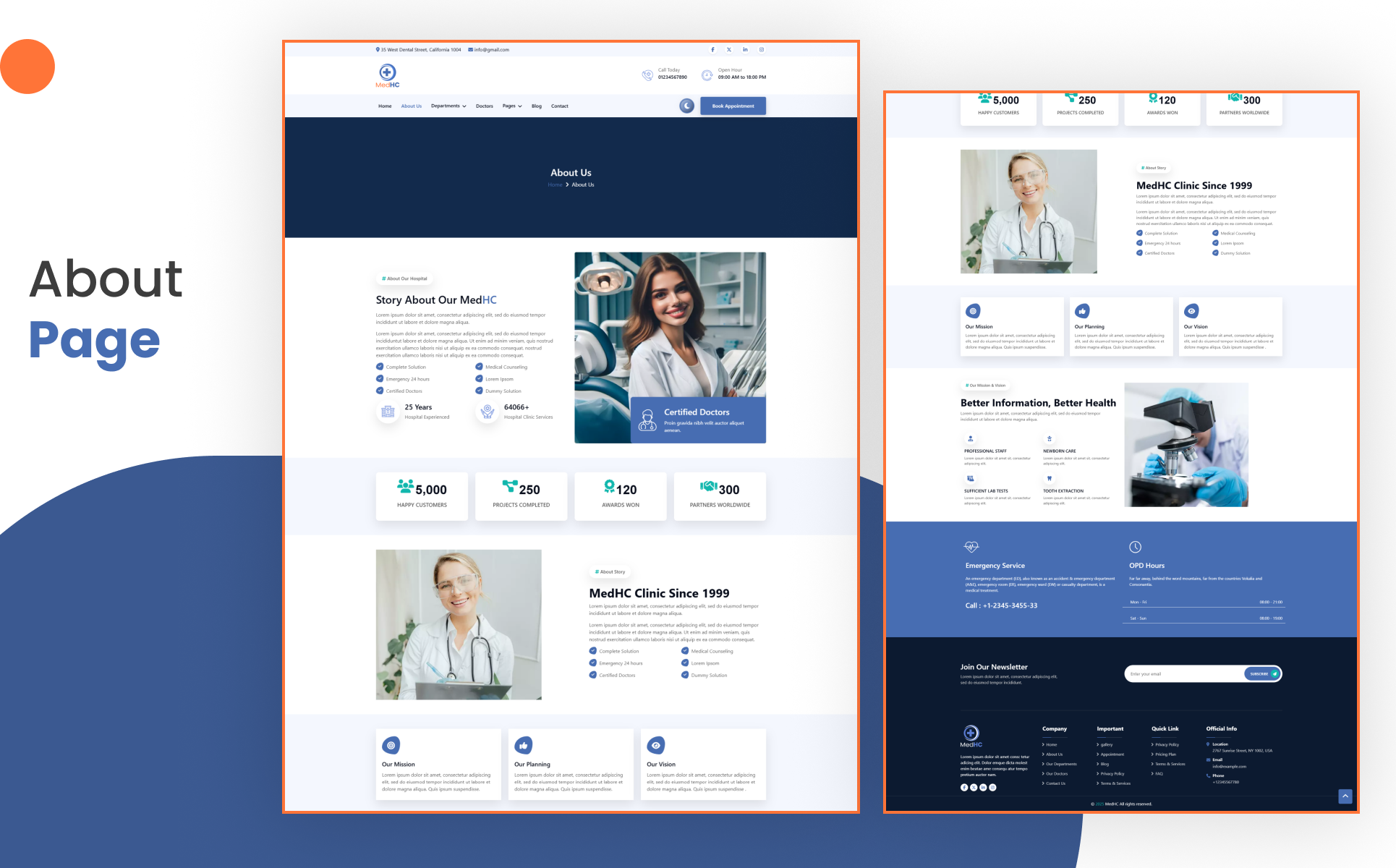- Pre-Built Essential Pages – MedHC comprises all the necessary pages such as Home, About, Services, Doctors, Blog, and Contact to help save time and efforts.