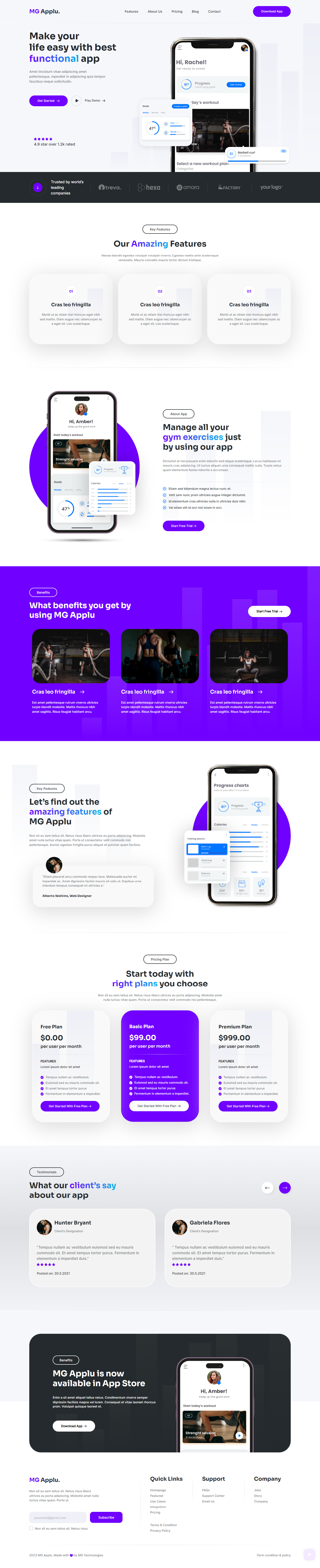 Design a feature-packed app landing page with the MG Applu template. Built using the latest HTML and Bootstrap, this template features a stunning design with attractive colors and graphics to draw in users. It’s fully responsive, ensuring a seamless experience on all devices, and includes easy navigation for showcasing app features. The user-friendly layout helps reduce bounce rates. Additional features include high speed, great performance, cross-browser support, SEO-friendliness, and lifetime free updates.