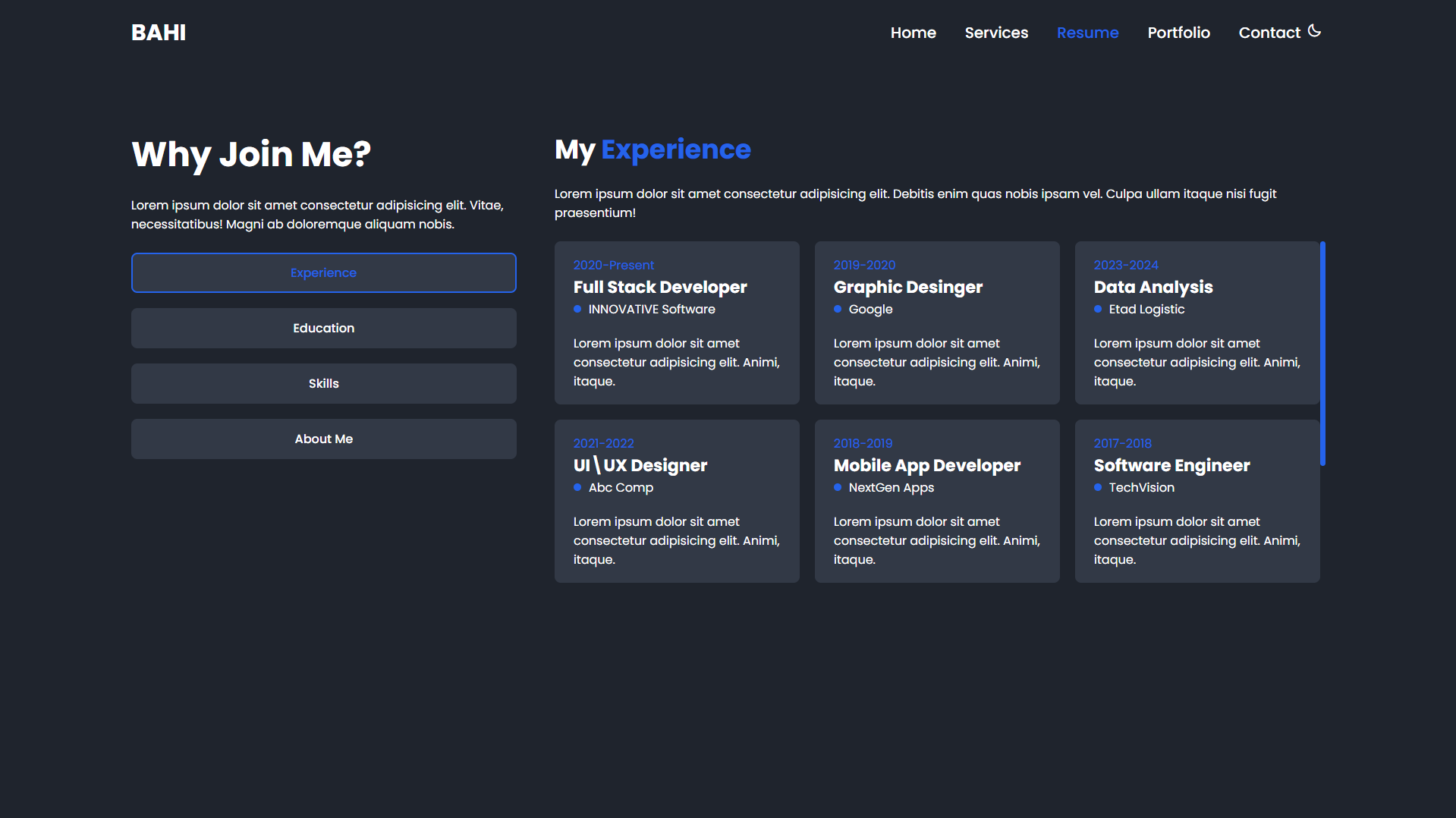 This modern responsive portfolio template is designed for web developers, designers, and creatives to showcase skills, projects, and services. Built with HTML5, CSS3, and JavaScript, it features smooth scrolling, dark/light mode, section animations, a preloader, and a validated contact form. Ideal for personal portfolios, freelance websites, and developer resumes, it supports responsive design across mobile, tablet, and desktop devices. Optimized for performance with lazy-loaded images and minified files, it includes a portfolio carousel and theme toggle. Perfect for tech professionals seeking a sleek, customizable solution.