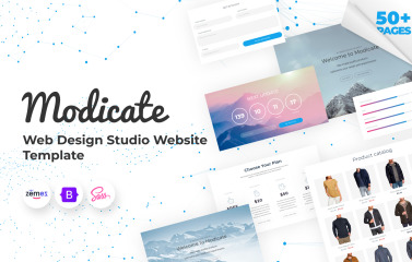 Modicate web design studio website template delivers outstanding functionality. Besides having a stunning look, it has a flexible layout. The latter is built to include all the necessary information about your services. The template also has integrated working forms. Still, some of them may require additional configuring. Here are some of the multiple features that Modicate offers out of the box: