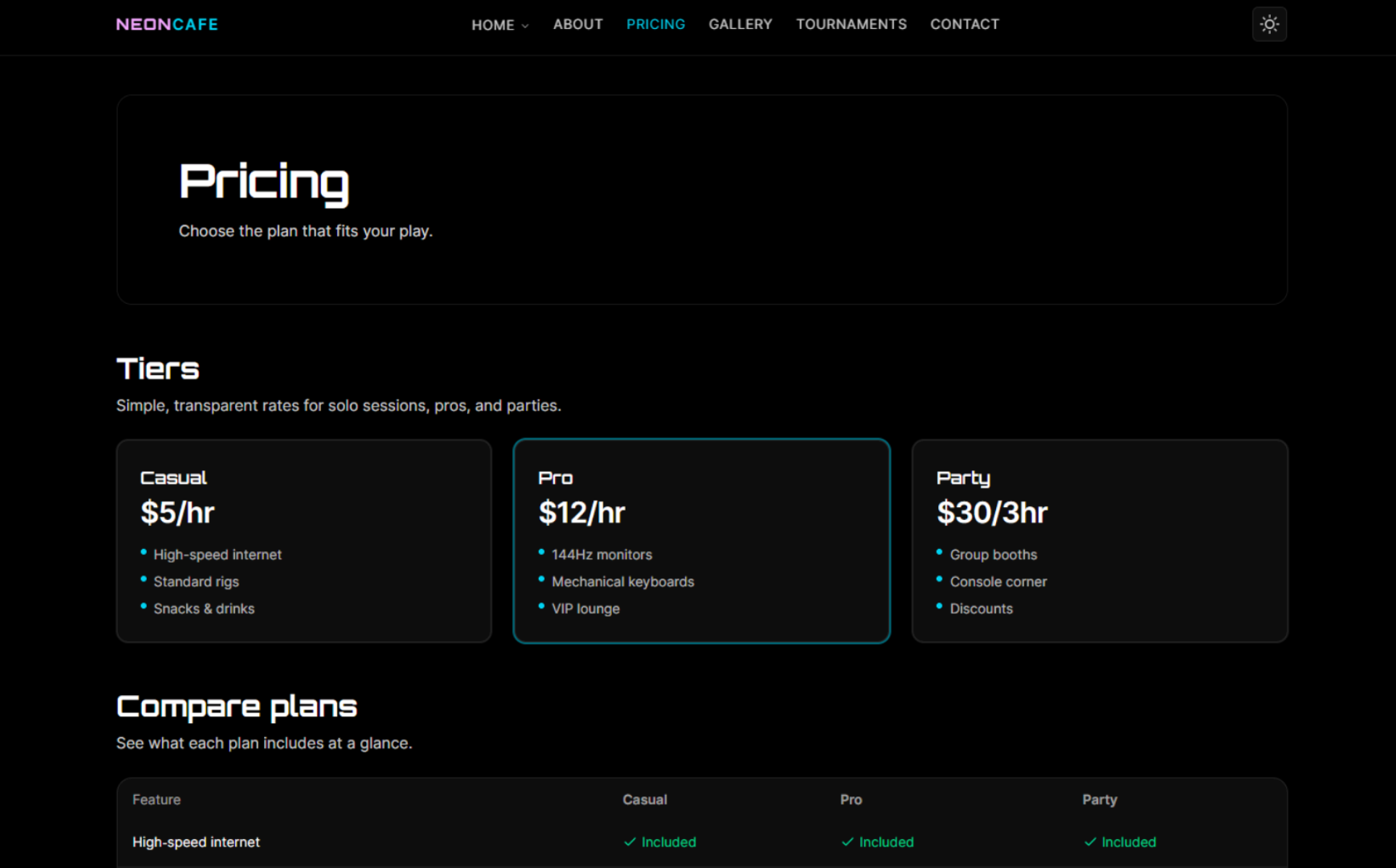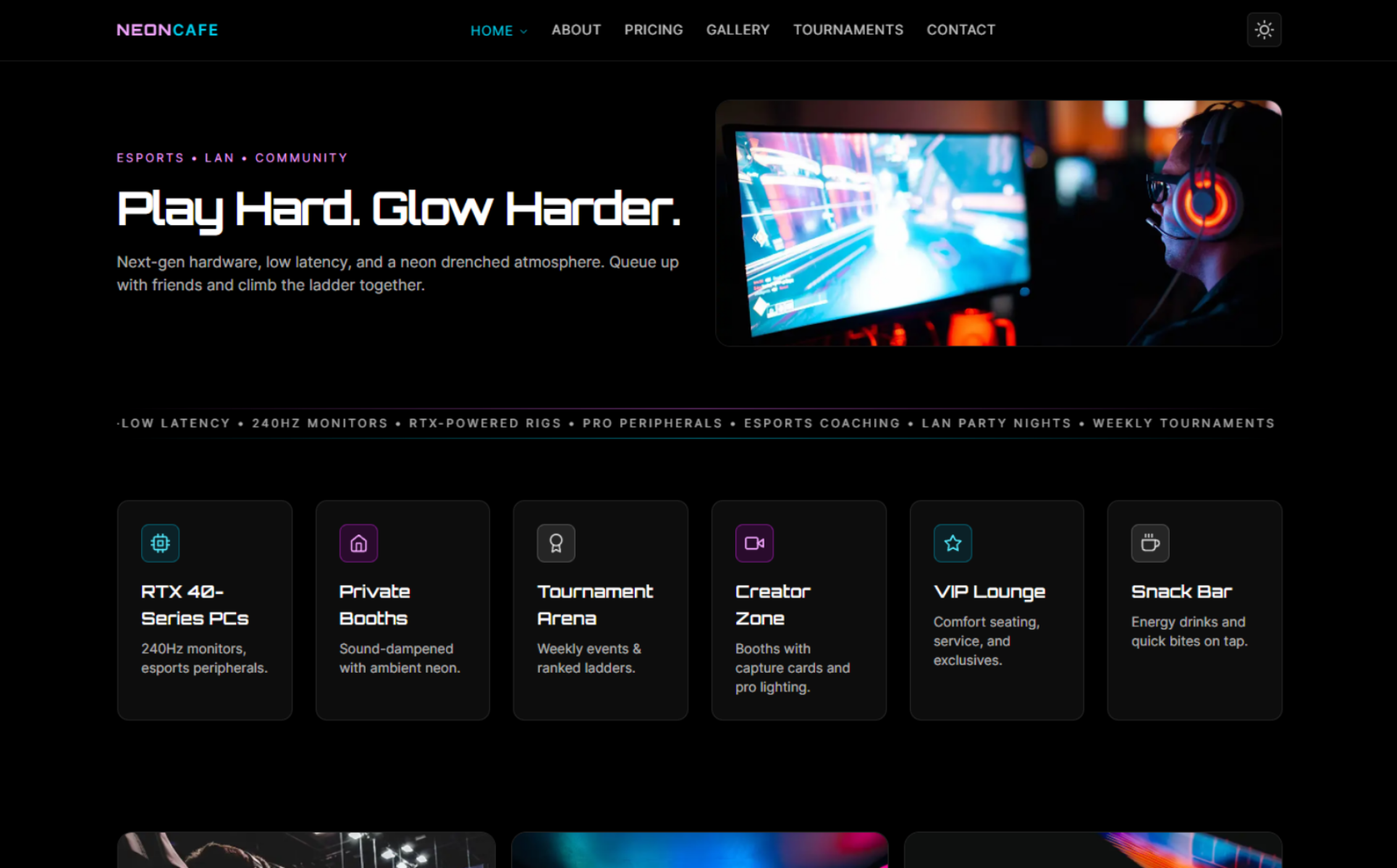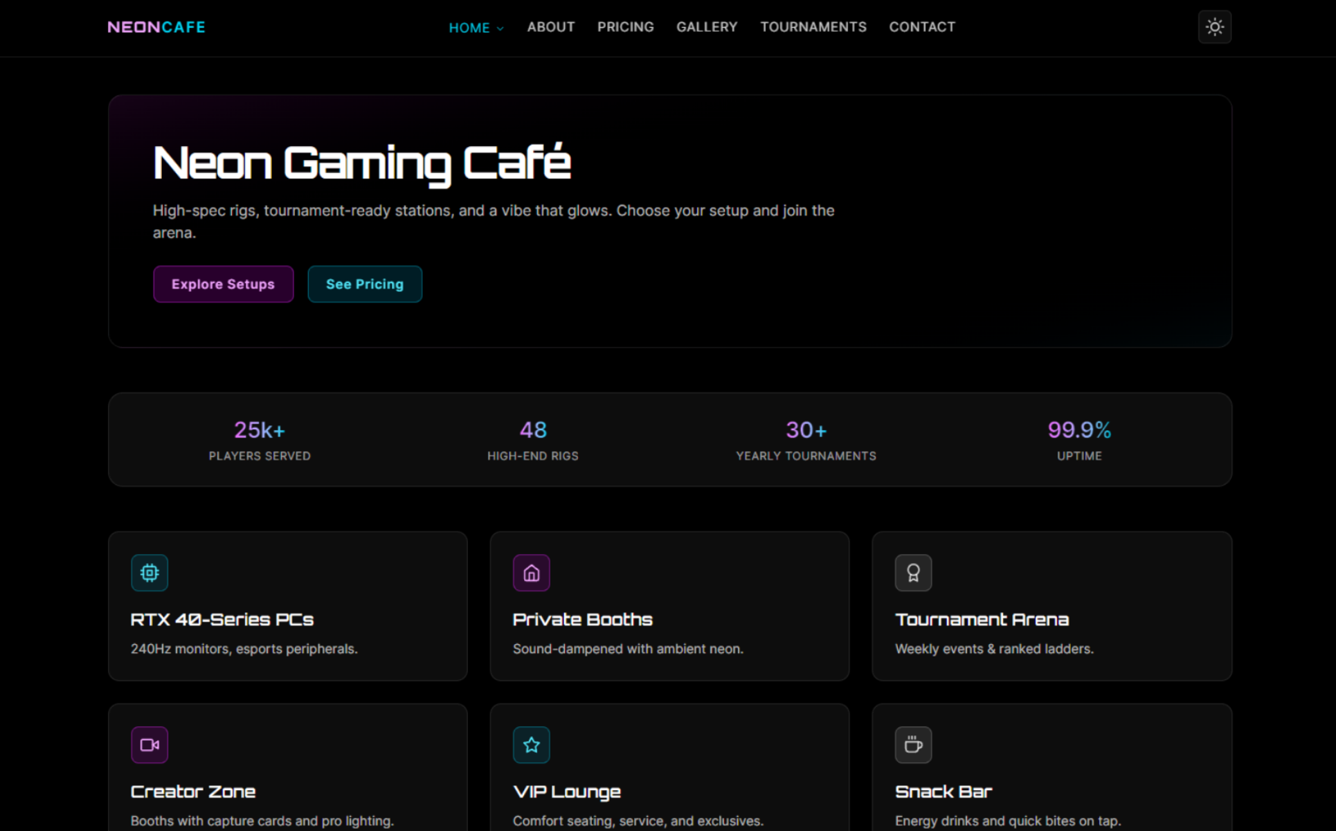 Neon Gaming Cafe React Theme - Vite, Tailwind, Framer Motion, 3 Home Demos Website Template