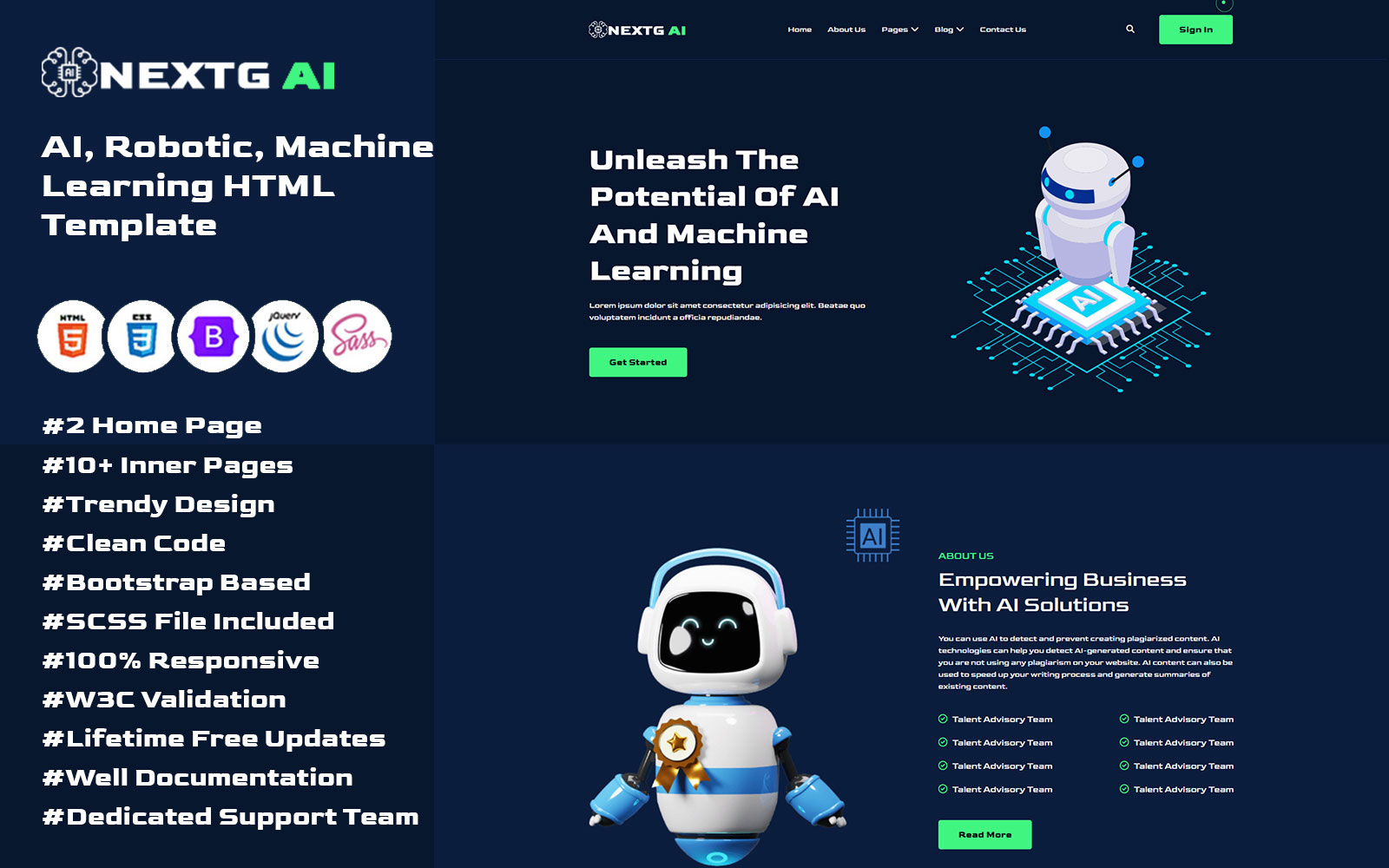 NextG AI - the quintessential HTML template tailored for enthusiasts of AI, Robotics, and Machine Learning. Developed on the latest Bootstrap iteration, this dynamic template seamlessly integrates state-of-the-art technology with captivating design elements.