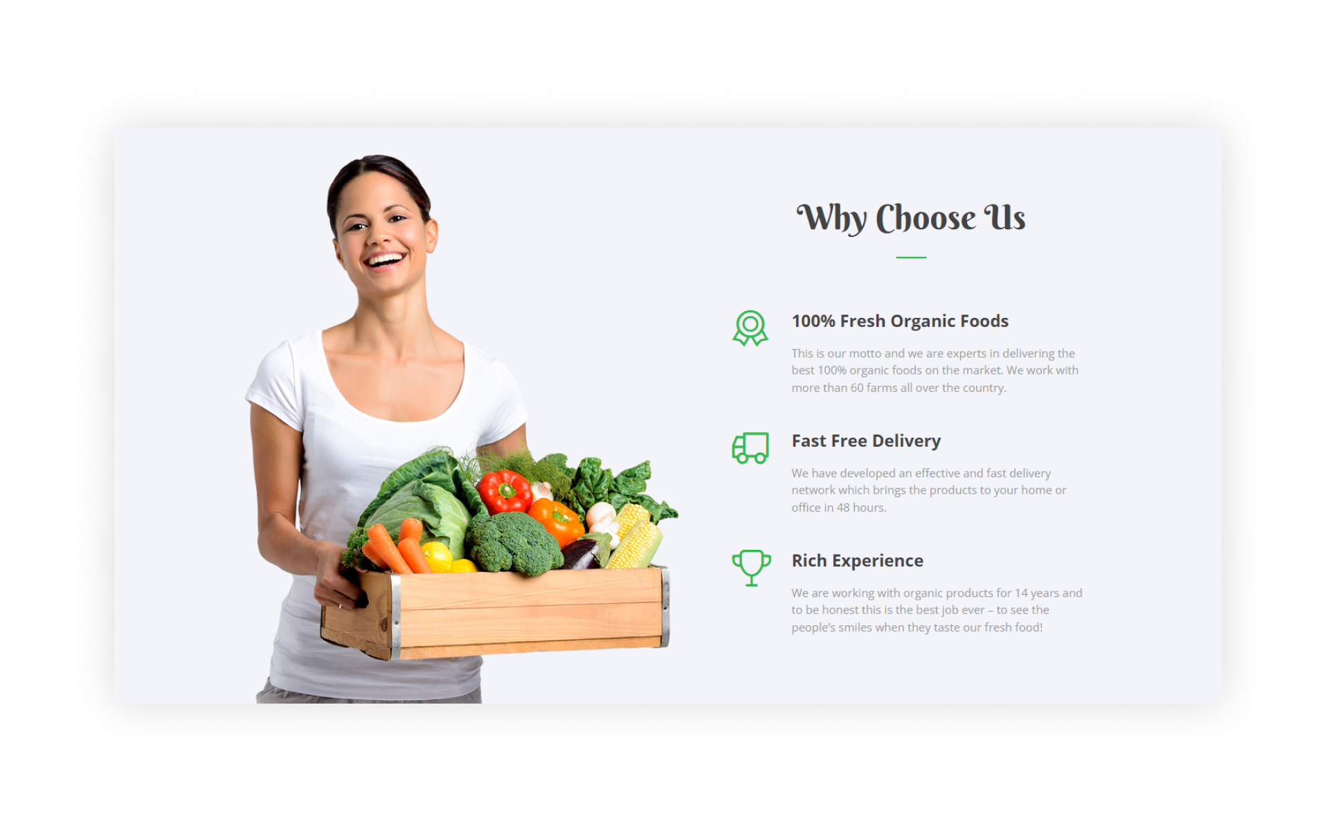 Reliable organic farm responsive HTML5 website template provides a wide range of tools for effective web development. These days, a well-designed website is an important means of promotion. It can help advertise your services and products. However, it can only be done with a professionally built website. That's why many companies choose to work with web developers and web design studios. This is a good option only when you need to create a website from scratch.
