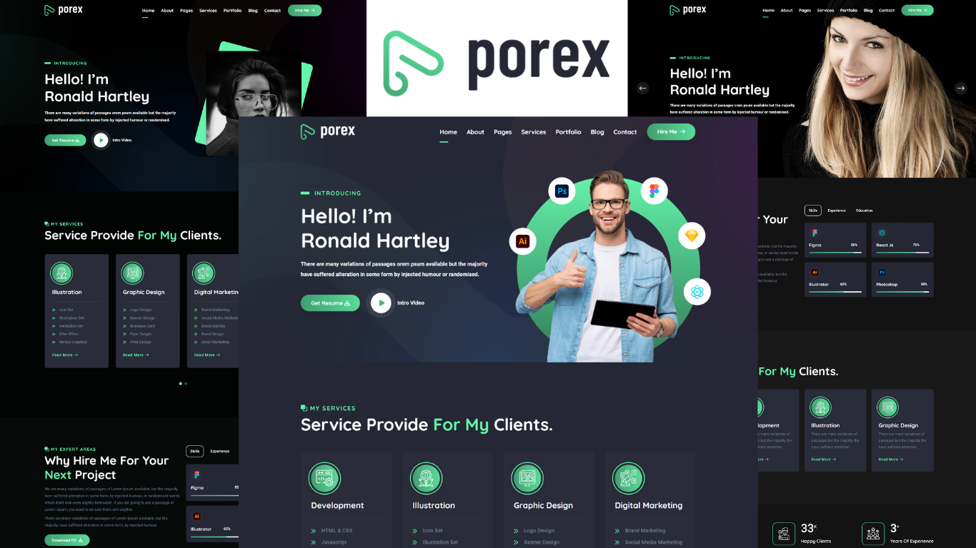 Porex is a exclusive HTML5 layout extraordinarily made for personal portfolio with elegant and proficient design. It's a cutting edge created HTML5 layout which can be utilized for Portfolio, Cv/Resume Website Templates.Every one of the segments are conveniently put on the homepage to ensure that it looks minimal and interruption free. A design that will suit each utilization, furthermore, provide your clients with a feeling of genuine quality. The ideal individual portfolio layout for beginners and experts. Best part of this template is its unique design makes it slightly different from others and represents the standard workflow with current age demand.