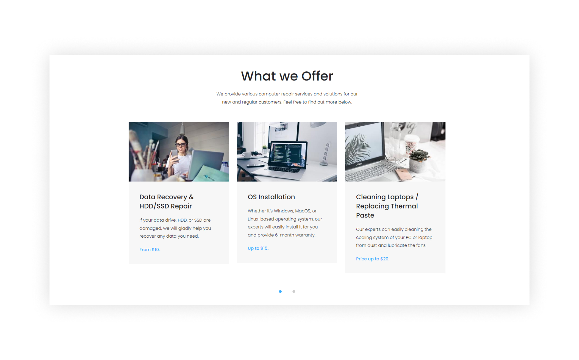 The Recona mobile repair services HTML5 template provides a detailed layout for a variety of included pages. Moreover, the template is well-designed and has a modern feel to it. This solution is a great choice for any repair services provider. Whether you work with PCs or mobile devices, Recona will meet your needs. Also, it comes with integrated features that make your website stable and interactive. Here are some of them: