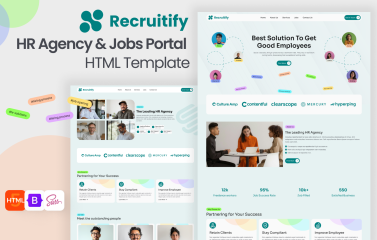 Recruitify - Agency HTML Template is a professional and highly customizable template designed specifically for recruitment agencies, HR consultancies, and job portals. Featuring a modern layout and responsive design, Recruitify Recruitment agency HTML template offers an engaging user experience on any device, helping recruitment professionals showcase job listings, company information, services, and testimonials seamlessly. With tailored sections like Home, About Us, Job Listings, Candidate Profiles, Testimonials, and Contact Us, this template provides a comprehensive and attractive online platform to attract both candidates and corporate clients. Built with SEO optimization, Recruitify job portal website template ensures your agency stands out in search results, drawing in high-quality traffic and boosting your online presence.