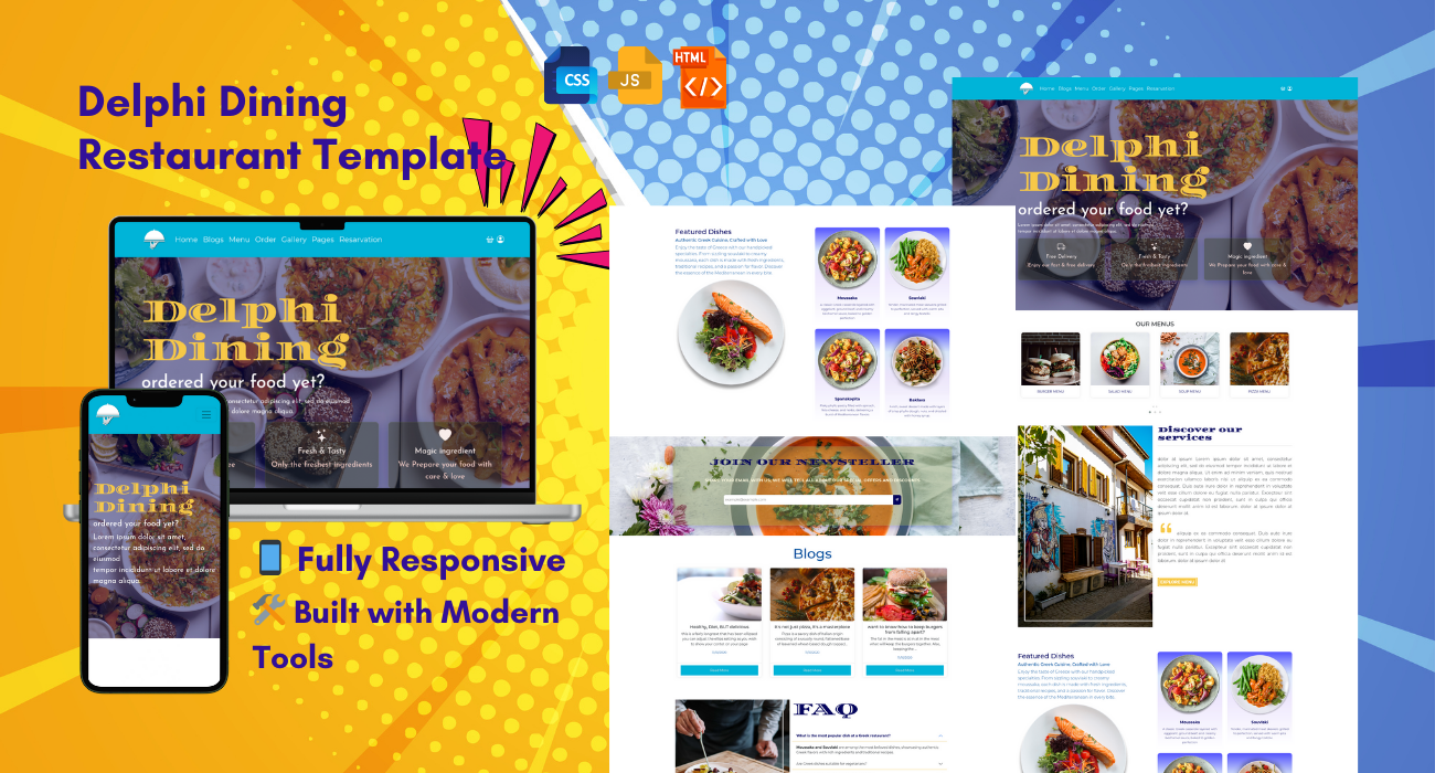 Fully responsive and elegant website design tailored for Greek restaurants, cafes, and catering businesses. The code is clean, well-structured, and easy to understand, with styles organized and explained through detailed comments. Features include responsive sliders, functional forms, an intuitive shopping cart page, a blog listing and detailed blog view with a comments section, and a dynamic, mobile-friendly image gallery.