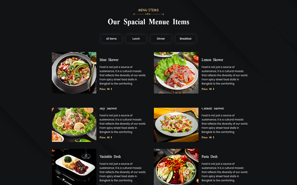 - Interactive Food Menu – Display your dishes with pricing, categories, and appetizing visuals.