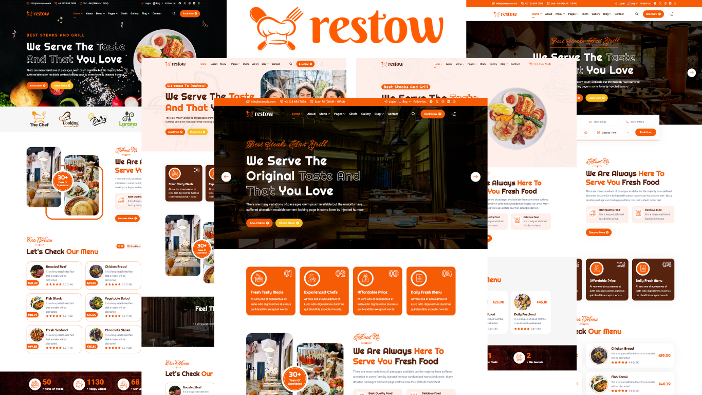 Restow-is a flawless and beautifully crafted HTML5 Template.Restow designed specifically for Restaurant, Cafe, Seafood, Bakery, Catering, Food business and related site.Restow is a cutting-edge, completely responsive solution that makes your restaurant's web presence come to life.This template lets you present your menu, chefs, and atmosphere in an eye-catching and user-friendly way with its simple, elegant design and easy navigation.Features include a stunning homepage with engaging visuals and an elegant menu section.Seamless functionality across devices, Restow ensures that your customers enjoy a smooth and appetizing browsing experience.Perfect for both small cafes and high-end dining experiences, Restow is versatile, customizable, and the ideal starting point for your restaurant's digital journey.