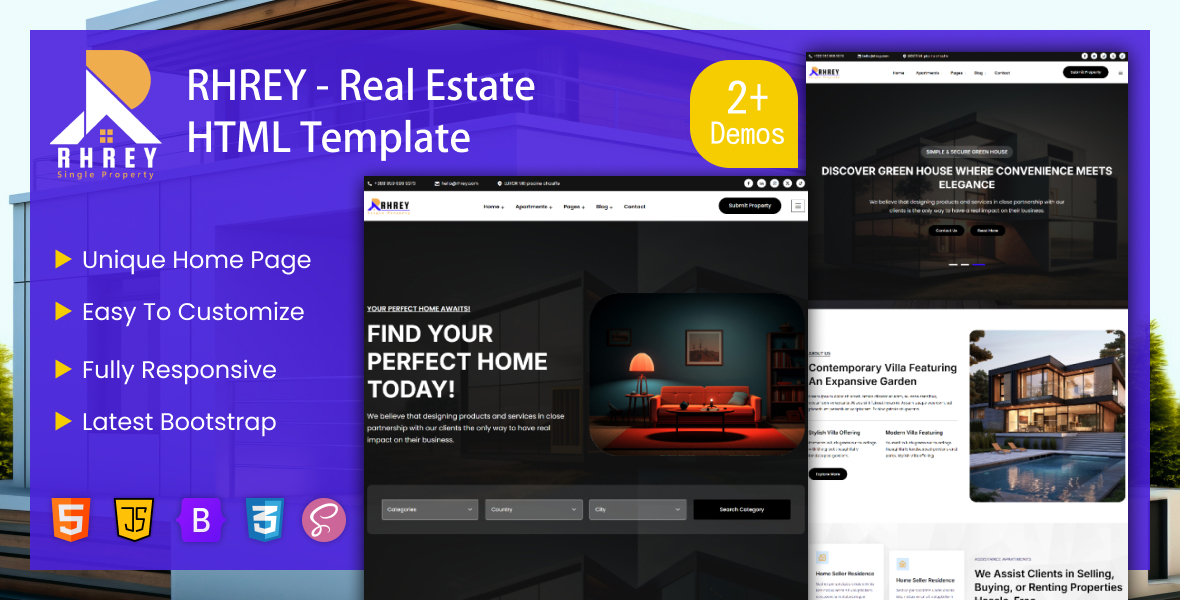 Rhrey is a vibrant and engaging HTML5 template designed specifically for single property websites. Property listing, real estate, real estate listing, house for sale, apartment for sale, property details. This template features a cheerful and user-friendly design that will attract customers. Rhrey offers a variety of customization options, ensuring that your property website stands out and meets all your needs. With its fully responsive layout, Rhrey ensures an optimal viewing experience across all devices.