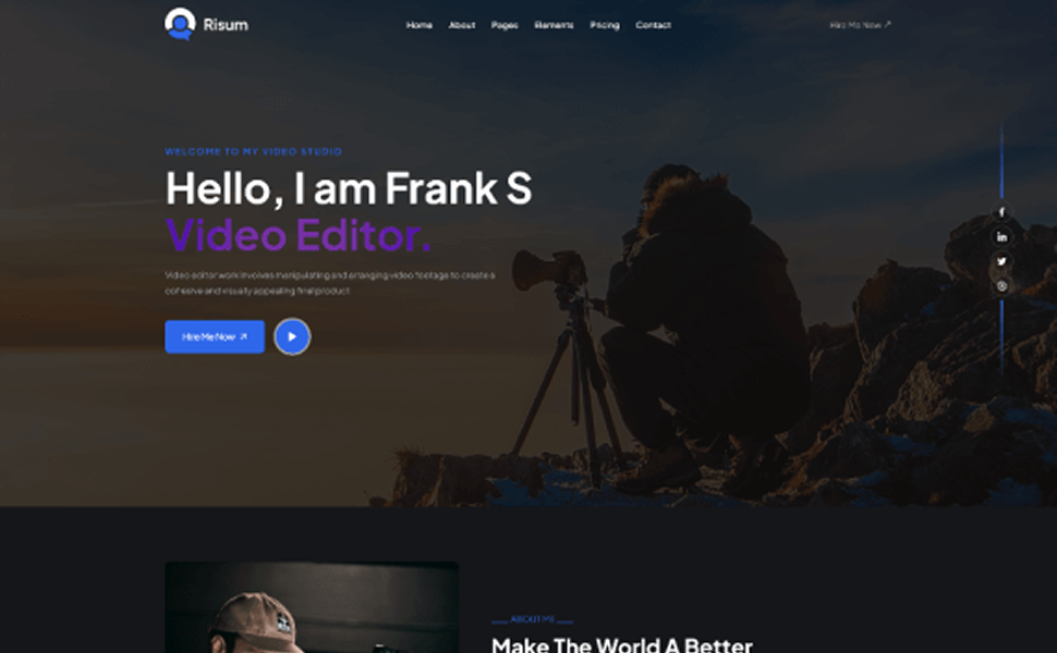 Risum is a sleek, one-page responsive portfolio template that also includes three additional inner pages—perfect for showcasing your talent and creativity. Whether you're a designer, developer, freelancer, architect, writer, photographer, fitness coach, chef, video editor, or any other kind of professional, Risum gives you the perfect stage to highlight your skills and work. It’s built with simplicity and performance in mind—easy to use, quick to load, and fully customizable to fit your style. Plus, with clear documentation and modern design practices, you’ll have no trouble getting your site up and running.