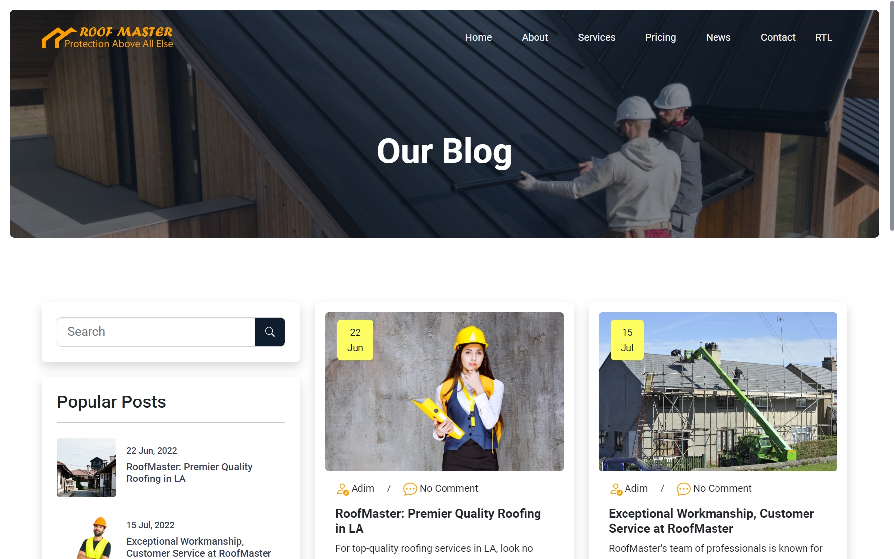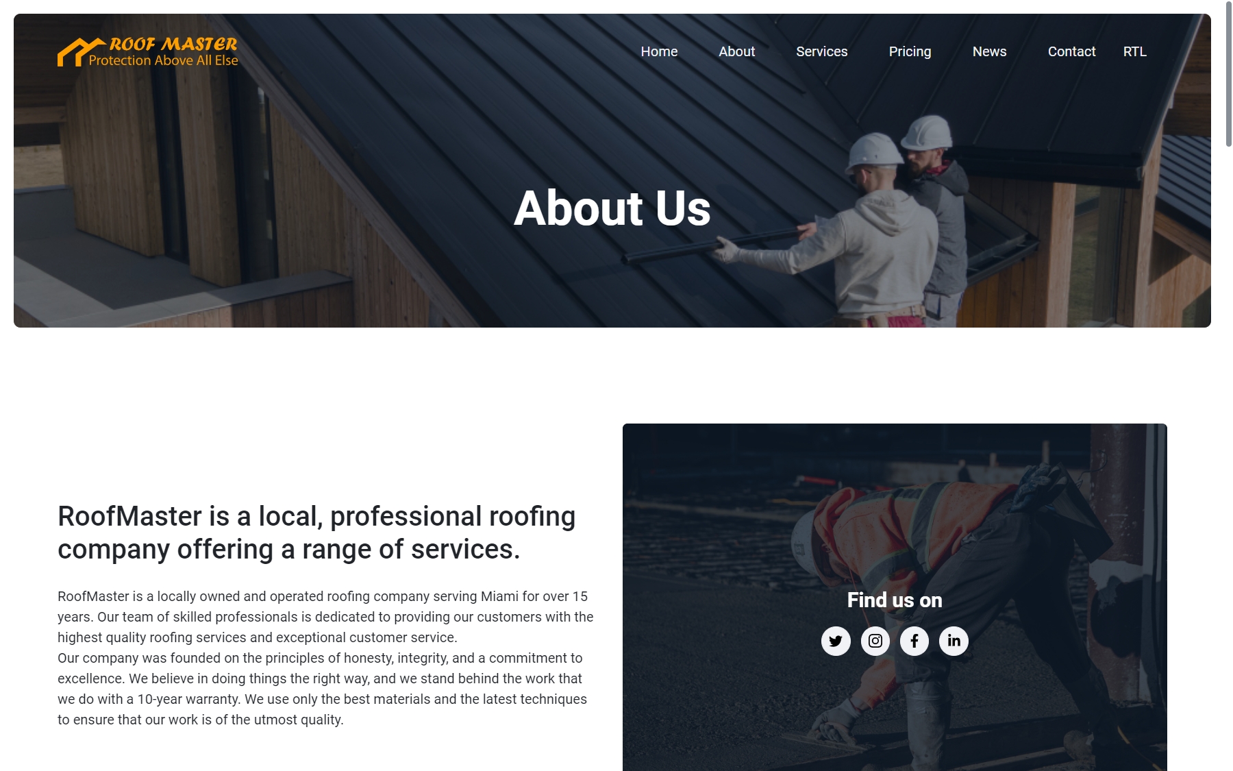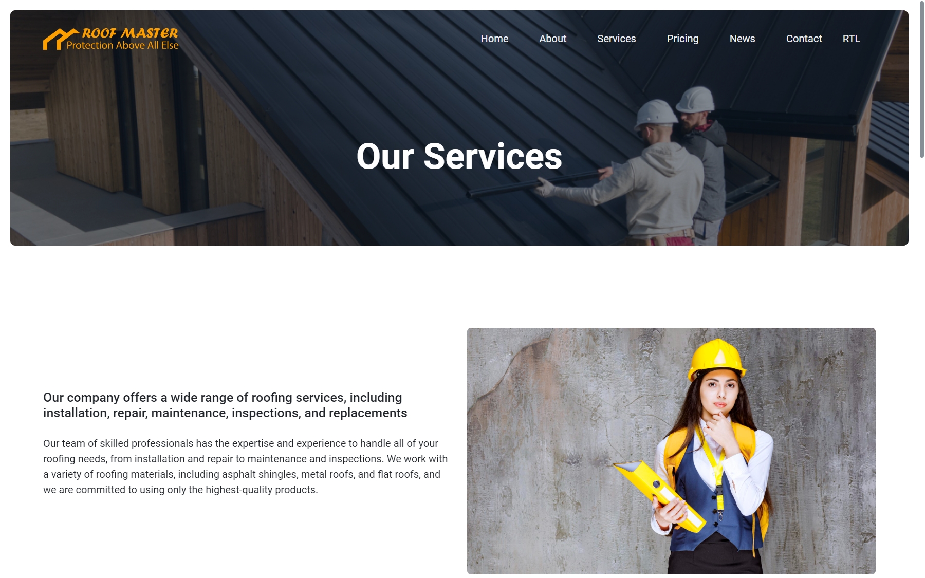 RoofMaster - Roofing Company Website HTML Template Website Template
