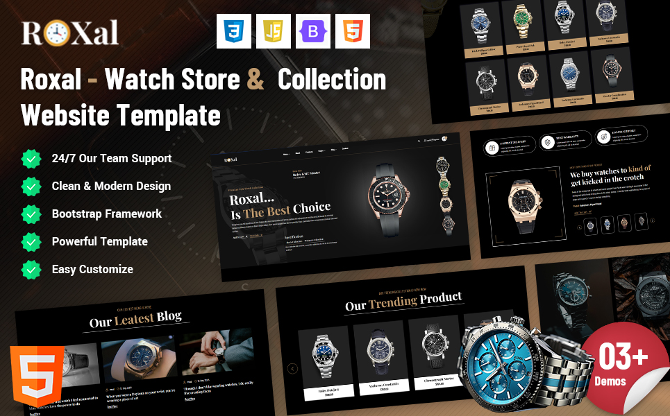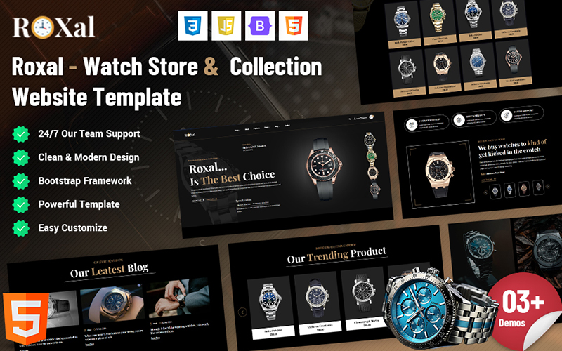 Roxal Watch Collection Website Template is a sophisticated and elegant solution designed for watch retailers and enthusiasts. Featuring a modern layout, it showcases a diverse range of timepieces with high-quality images and detailed descriptions, allowing customers to explore various styles and functionalities effortlessly. The template is fully responsive, ensuring an optimal viewing experience across all devices, from desktops to smartphones. With user-friendly navigation and customizable features, the Roxal template enhances the shopping experience by enabling easy access to product categories, special offers, and customer reviews. Integrated with e-commerce capabilities, it supports secure transactions and inventory management, making it an ideal choice for businesses looking to establish a strong online presence in the luxury watch market.
