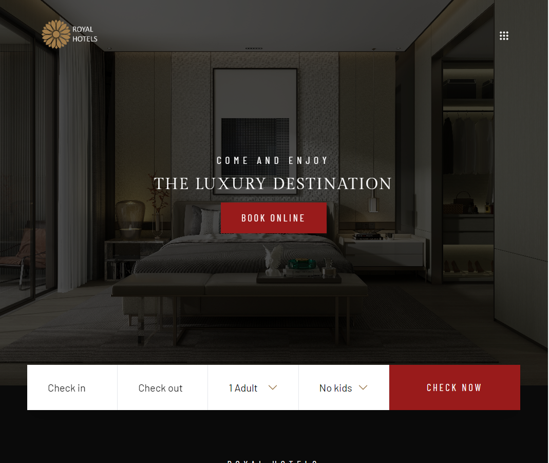 The Royals react Hotel Template is a modern, fully responsive, and customizable solution designed for hotels that want to deliver a seamless and engaging booking experience for their guests. Built using React and Tailwind CSS, this template combines the powerful functionality of React’s component-based architecture with the design flexibility of Tailwind CSS, enabling developers to quickly create a polished user interface. It is fully responsive, ensuring a smooth user experience on all devices, from mobile phones to desktops.