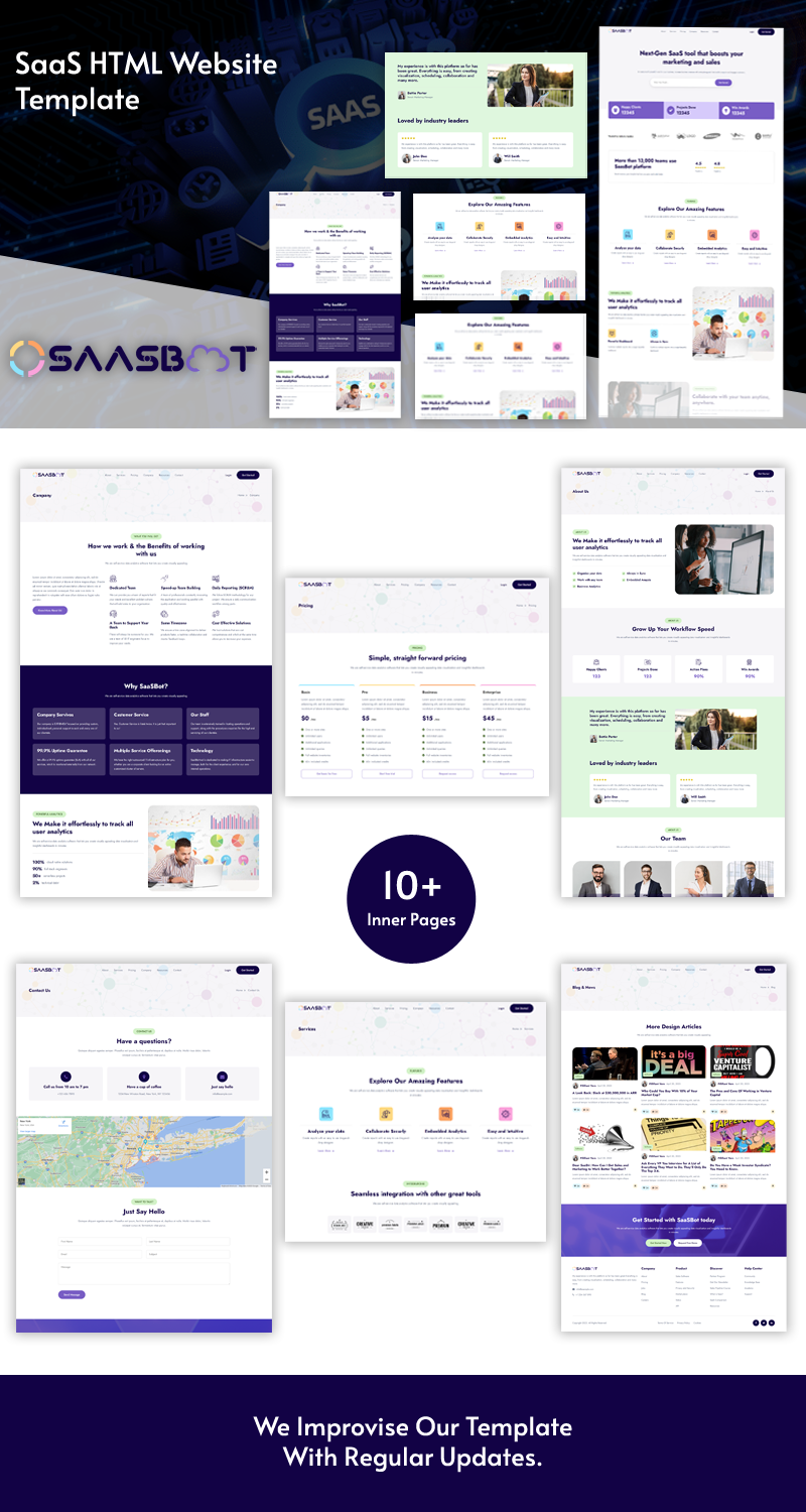This template includes pre-designed pages, feature sections, pricing tables, and blog layouts, making it easy to build a professional and visually appealing website. Built with clean and SEO-optimized code, SaasBot ensures high performance, fast loading times, and compatibility across all modern devices and browsers.