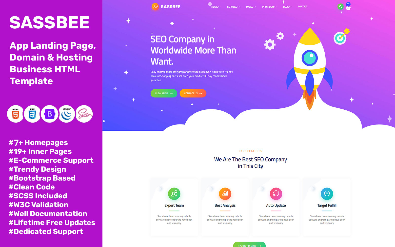 Sassbee is a multipurpose sass landing HTML template. It is fit for any kind of IT template. Sassbee is very special for those companies who want to provide software-related services and launch a website for displaying sass, software, and applications. This template helps to create a fast-loading website for software businesses. It has five homepage layouts which are really very essential for a business starter. You can choose your expected homepage for launching your website. In addition, 29+ inner pages will give you extra facilities to show more information about your services. Sassbee's shop page will help you to sell your services from your website also. If someone wants to convert it into other technology like Laravel, Magento, Joomla, or WordPress, this template is very suitable for converting. Sassbee is created with the latest version of Bootstrap that will help you to make your website 100% compatible with any device.