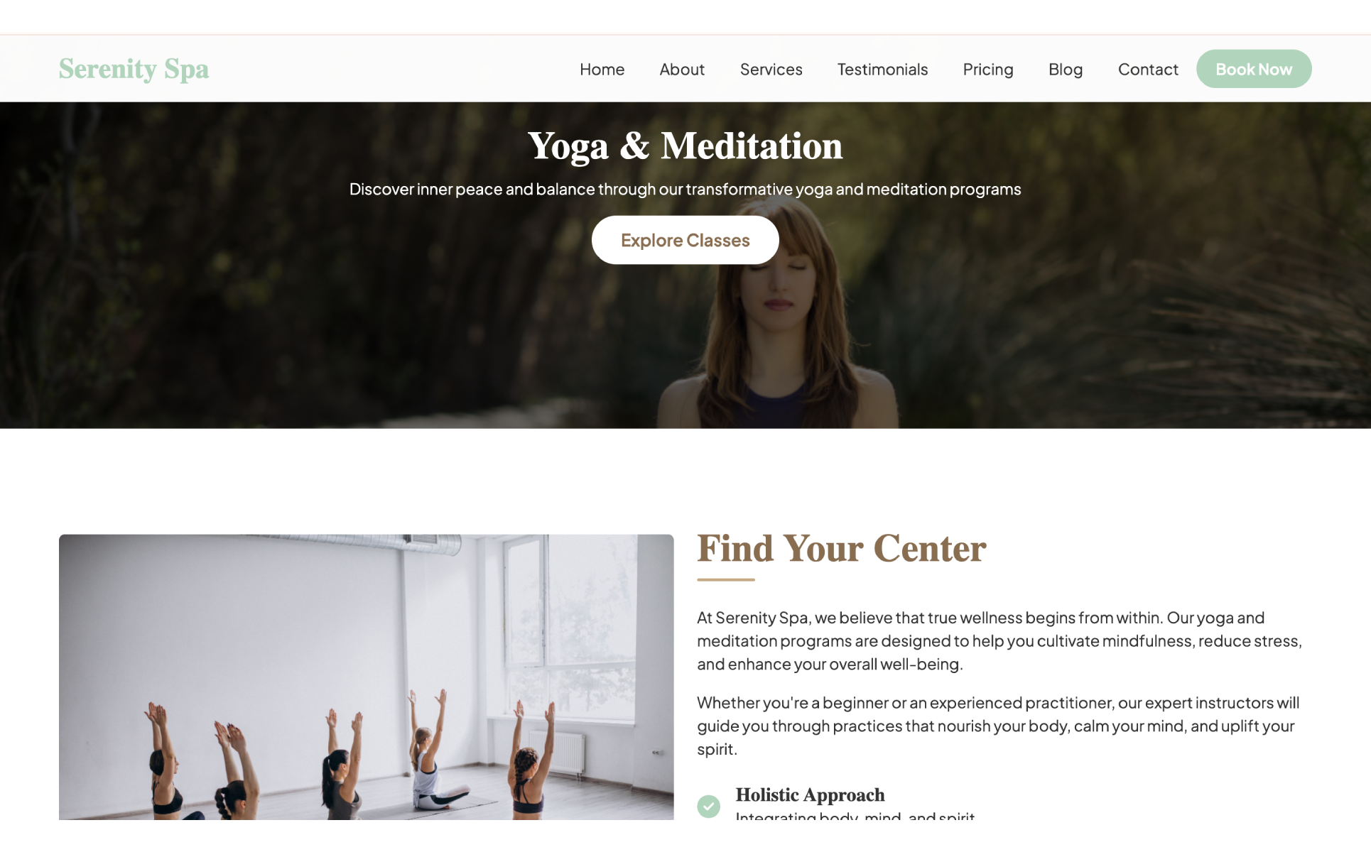 Serenity – Spa & Wellness Bootstrap Template for Beauty, Yoga & Health Website Template