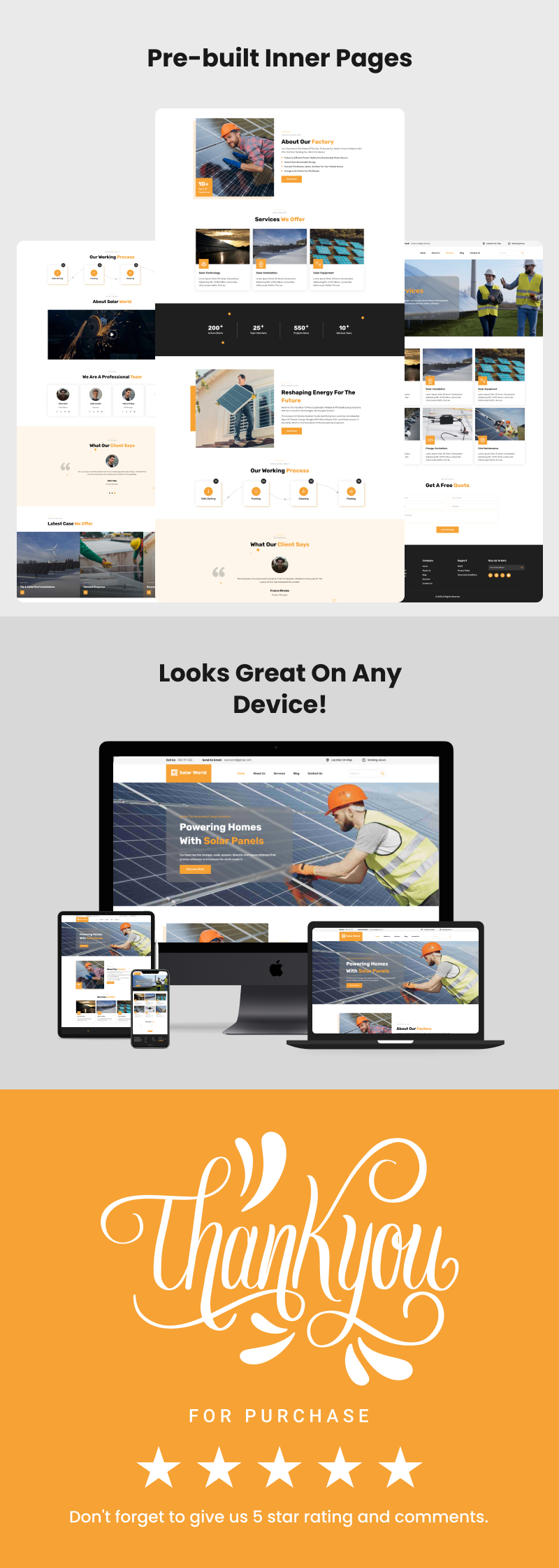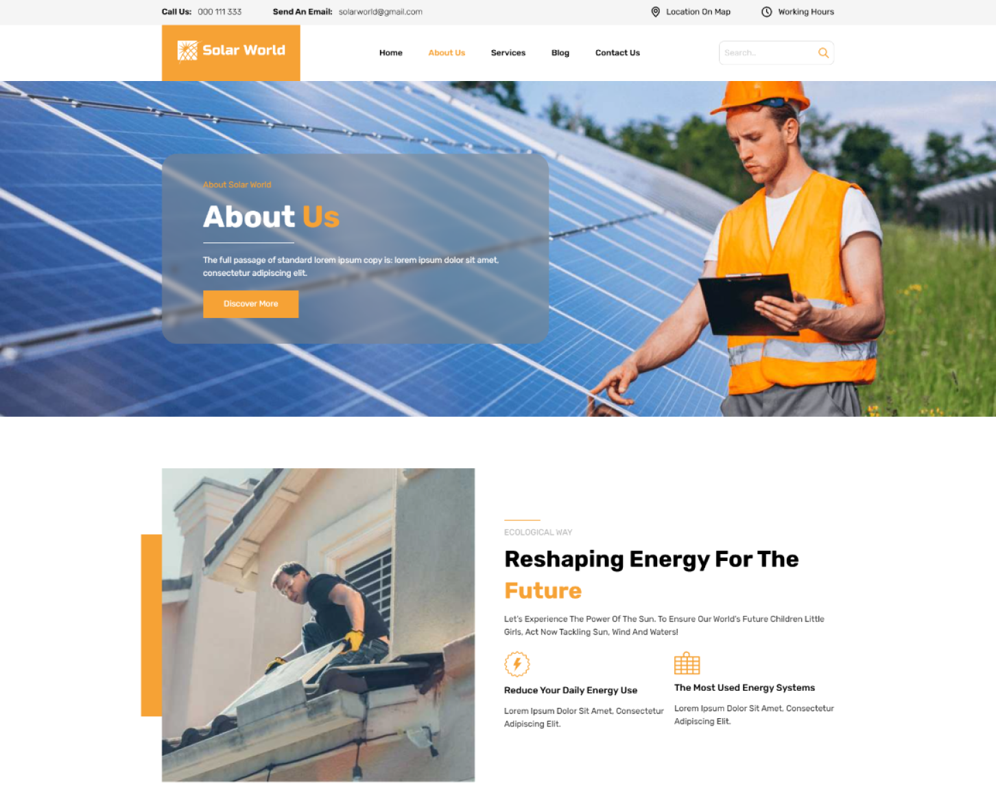 With its amazing design and usability, this template is a unique and handy tool to create websites. Stop wasting hours designing from scratch—Solar World has everything you need in one package to bring your idea to life.