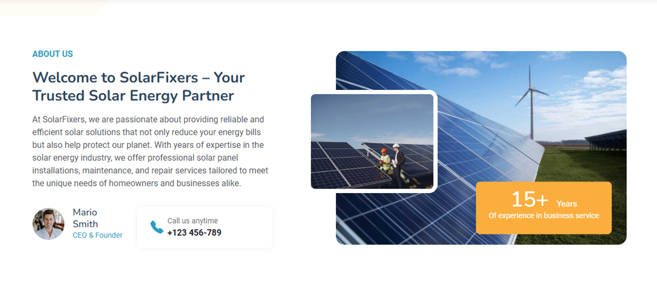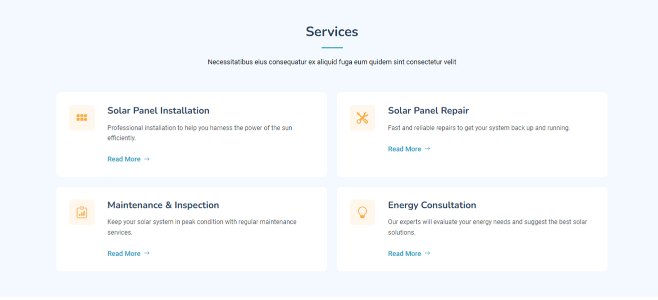 - Service Listings: Effortlessly display your solar installation and repair services.