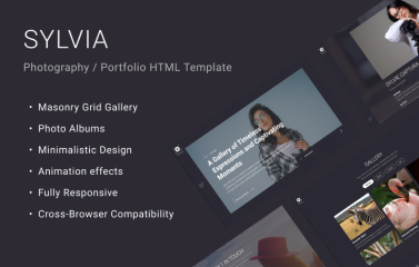 The HTML template "Sylvia" is a stylish and functional web design crafted specifically for photographers looking to showcase their portfolio in the best possible light. Available on the templatemonster platform, this template offers unique features and an elegant design to create an impressive online presence. Here are some key features of the template: