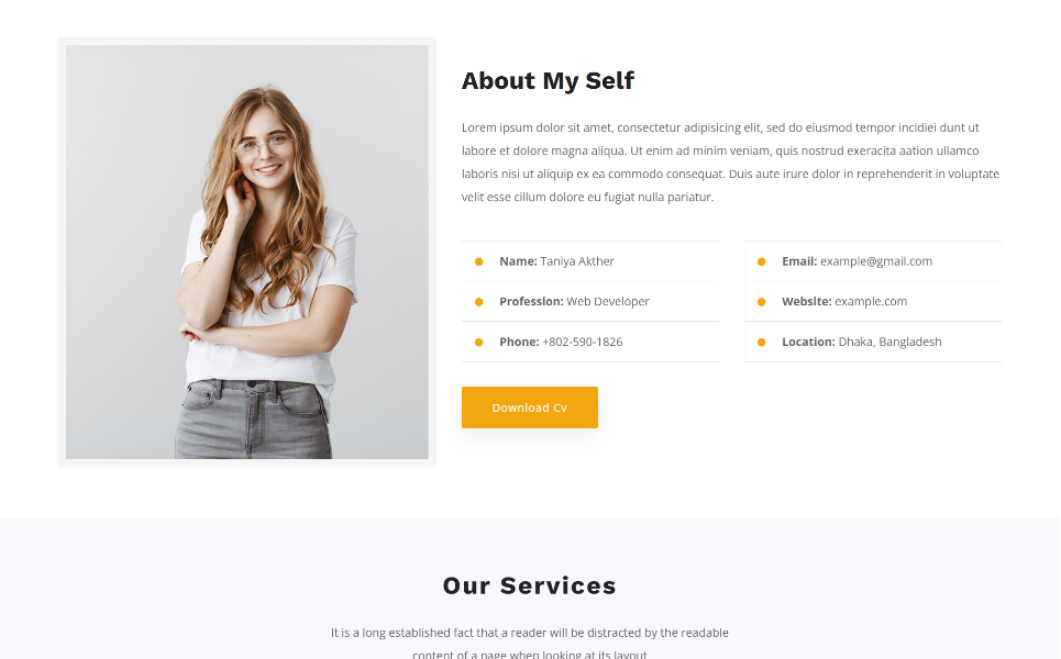 Taniya Personal Portfolio HTML5 Template Website Template